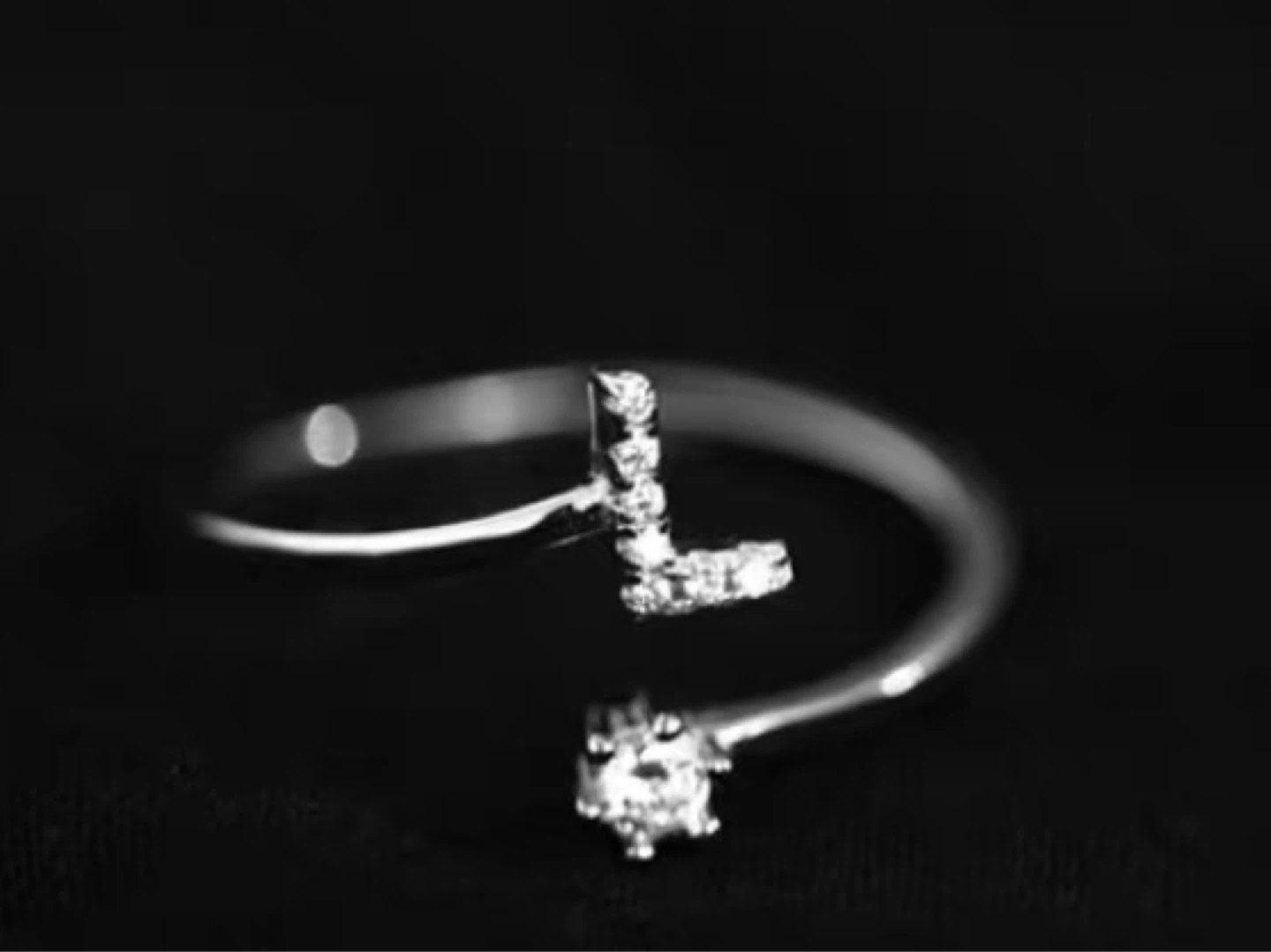 Selling a cute initial 'L' ring! It's adjustable, so it should fit most fingers. The ring is in great condition and has a sparkly little stone on each end