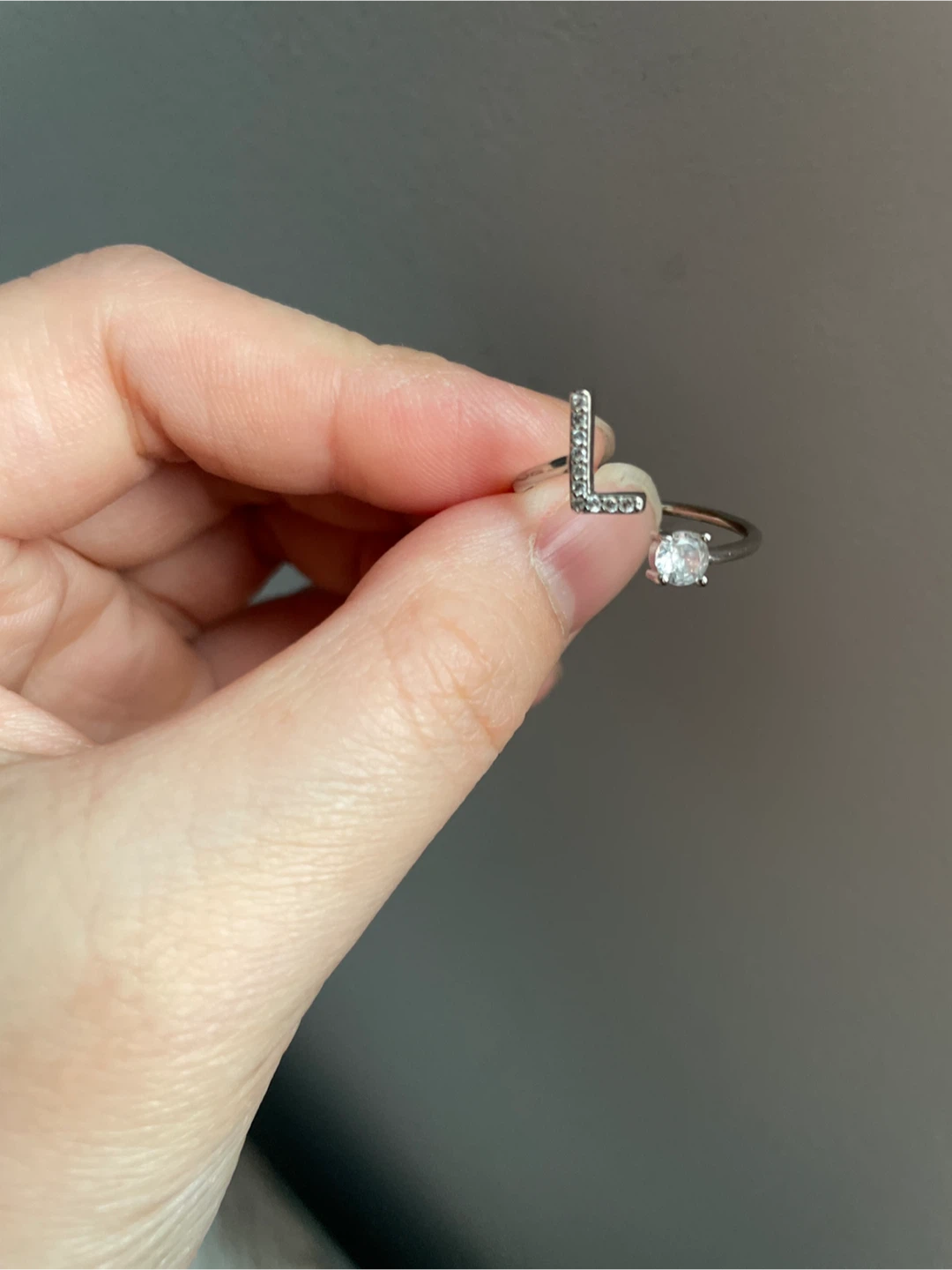 Selling a cute initial 'L' ring! It's adjustable, so it should fit most fingers. The ring is in great condition and has a sparkly little stone on each end
