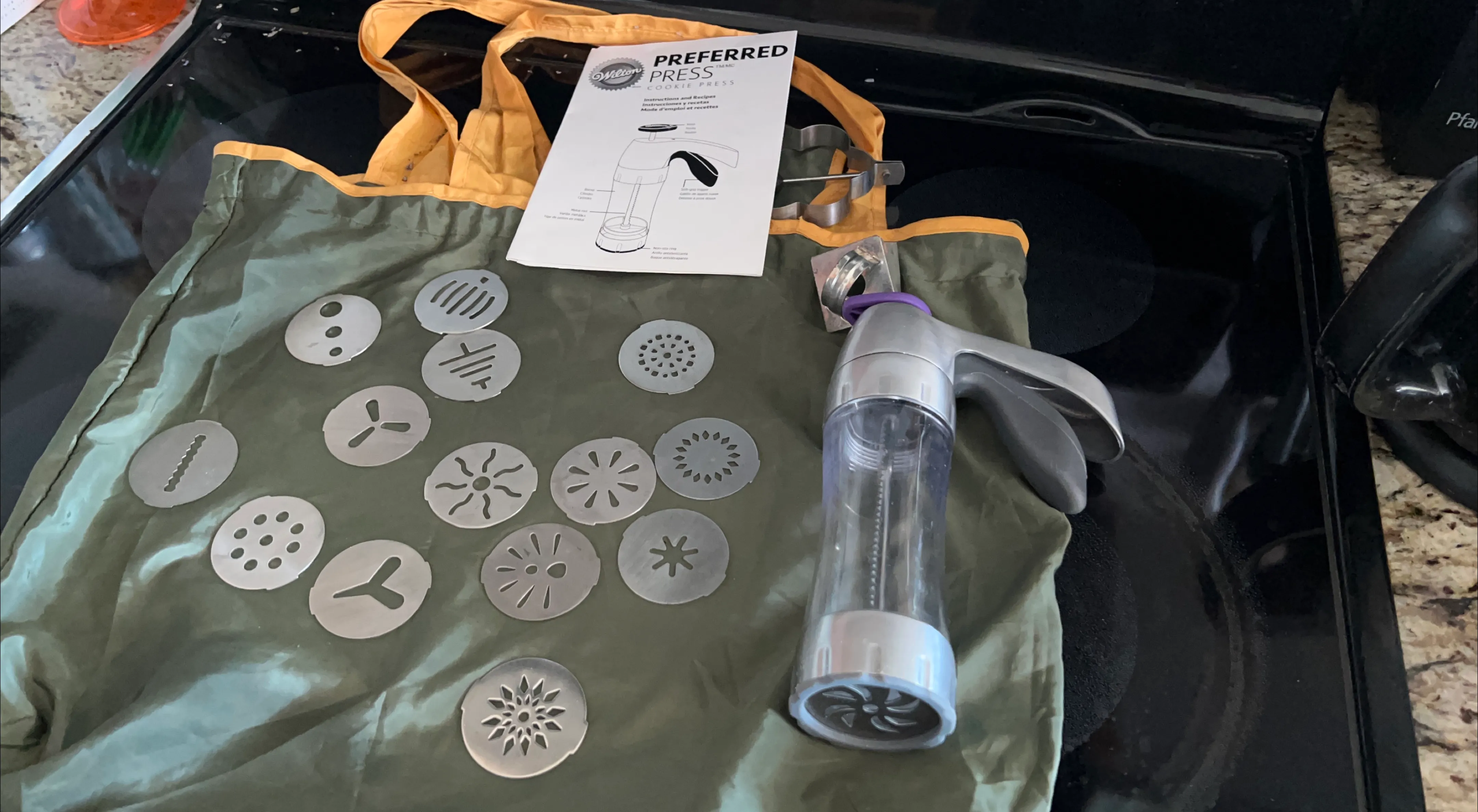 I'm selling a Wilton Preferred Press Cookie Press. It comes with a variety of disks for making different cookie shapes. This set includes the cookie press, multiple design disks, and instructions