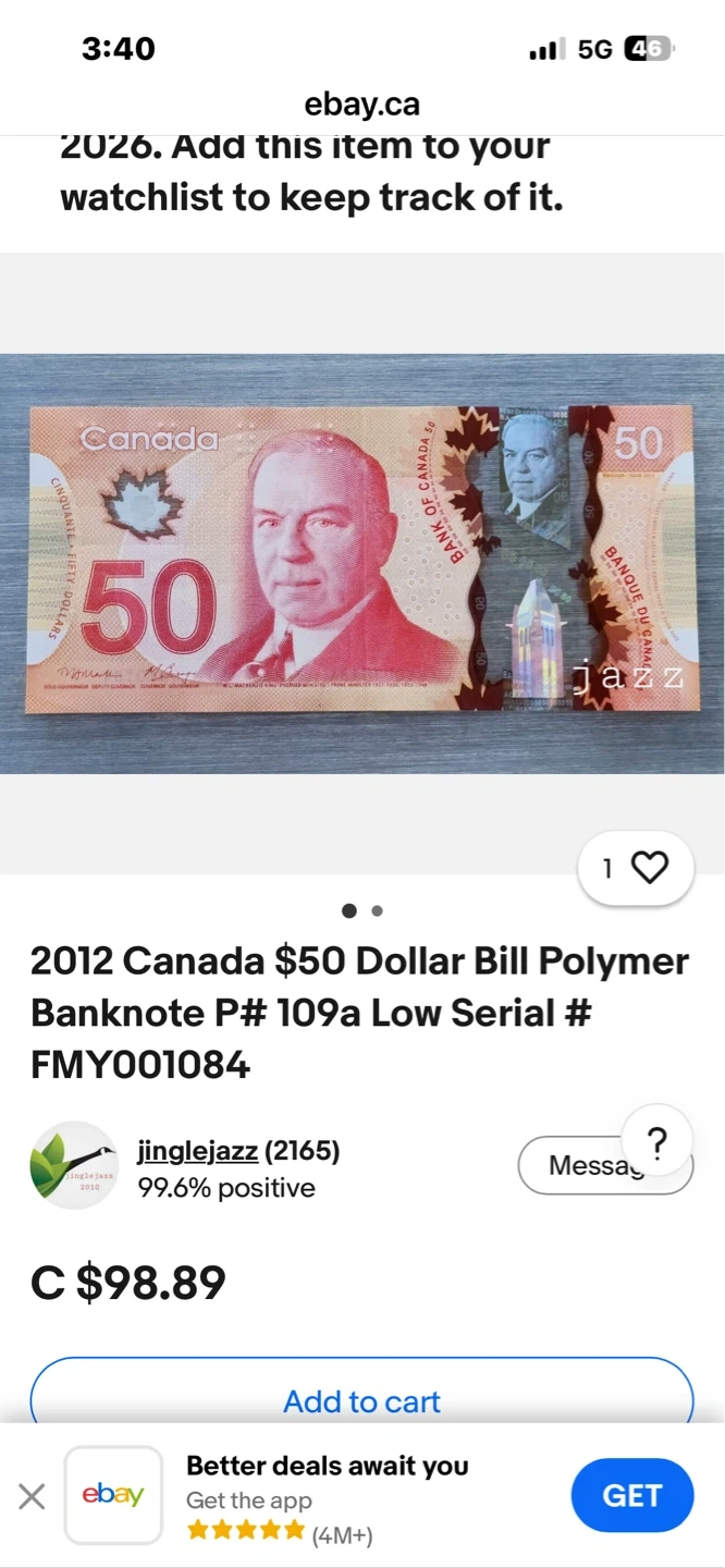 Buy & SellFanatics edition Canada $50 Polymer BanknoteFanatics edition Canada $50 Polymer Banknote$65One polymer $50 banknote from Canada. Features an icebreaker ship on one side and William Lyon Mackenzie King on the other. This is a 2012 issue.WHERE TO MEETMarine and fellView MapSELLERverifiedMustafaMarine Hamilton39038 reviews1 chats·0 favorites·154 viewsSEND CHAT TO SELLERHi Mustafa! I’m interested in your listing.Hi Mustafa! I’m interested in your listing.Get the Karrot app to chatSign In to chat