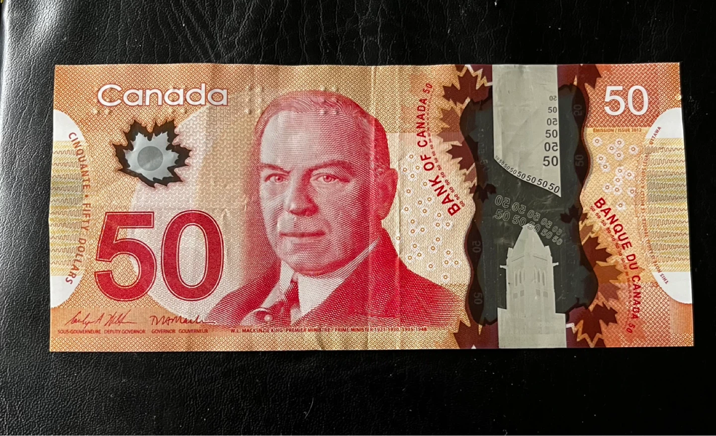 Buy & SellFanatics edition Canada $50 Polymer BanknoteFanatics edition Canada $50 Polymer Banknote$65One polymer $50 banknote from Canada. Features an icebreaker ship on one side and William Lyon Mackenzie King on the other. This is a 2012 issue.WHERE TO MEETMarine and fellView MapSELLERverifiedMustafaMarine Hamilton39038 reviews1 chats·4 favorites·584 viewsSEND CHAT TO SELLERHi Mustafa! I’m interested in your listing.Hi Mustafa! I’m interested in your listing.Get the Karrot app to chatSign In to chat