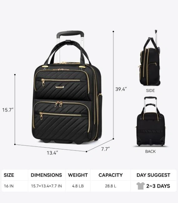 New Underseat Carry On Luggage with Wheels fits 15.6 Inch Laptop