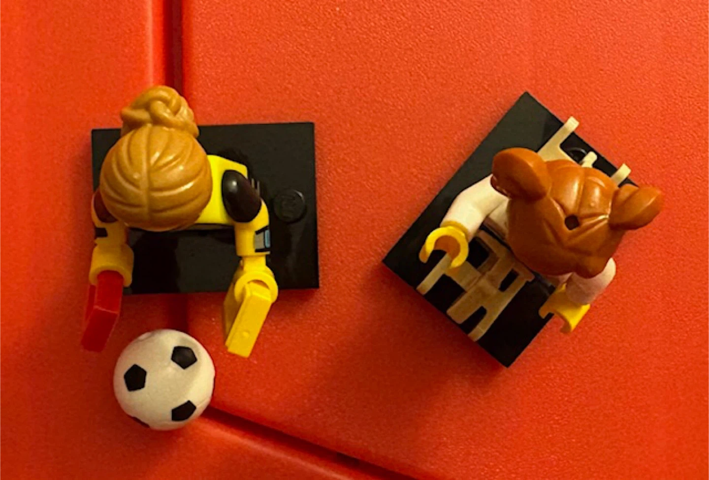 Two Lego minifigures for sale! One is a soccer referee with a soccer ball, and the other is a girl on a rocking horse. Great for adding to your Lego collection or for imaginative play 🤩 $4 each