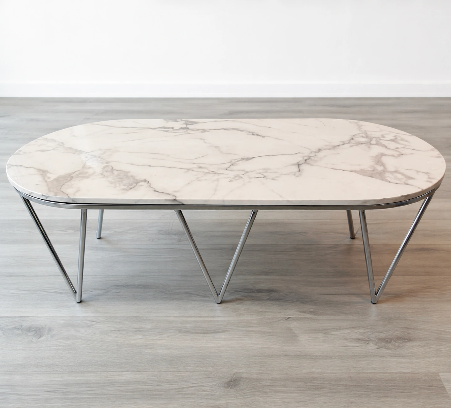 Solid Marble Coffee Table – Modern Chrome Base (Heavy)