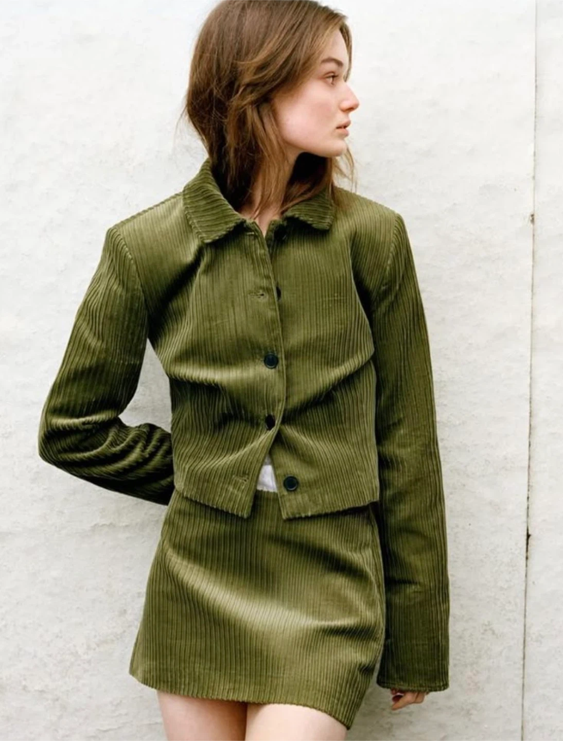 Popular Corduroy Jacket & Skirt Set - Size S