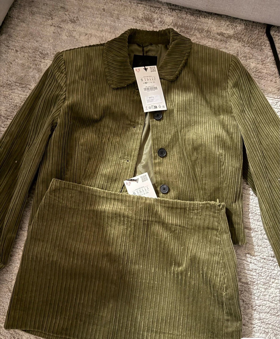Selling a cute Zara corduroy jacket and skirt set in size small! It's a stylish outfit that's perfect for fall. The set is new with tags