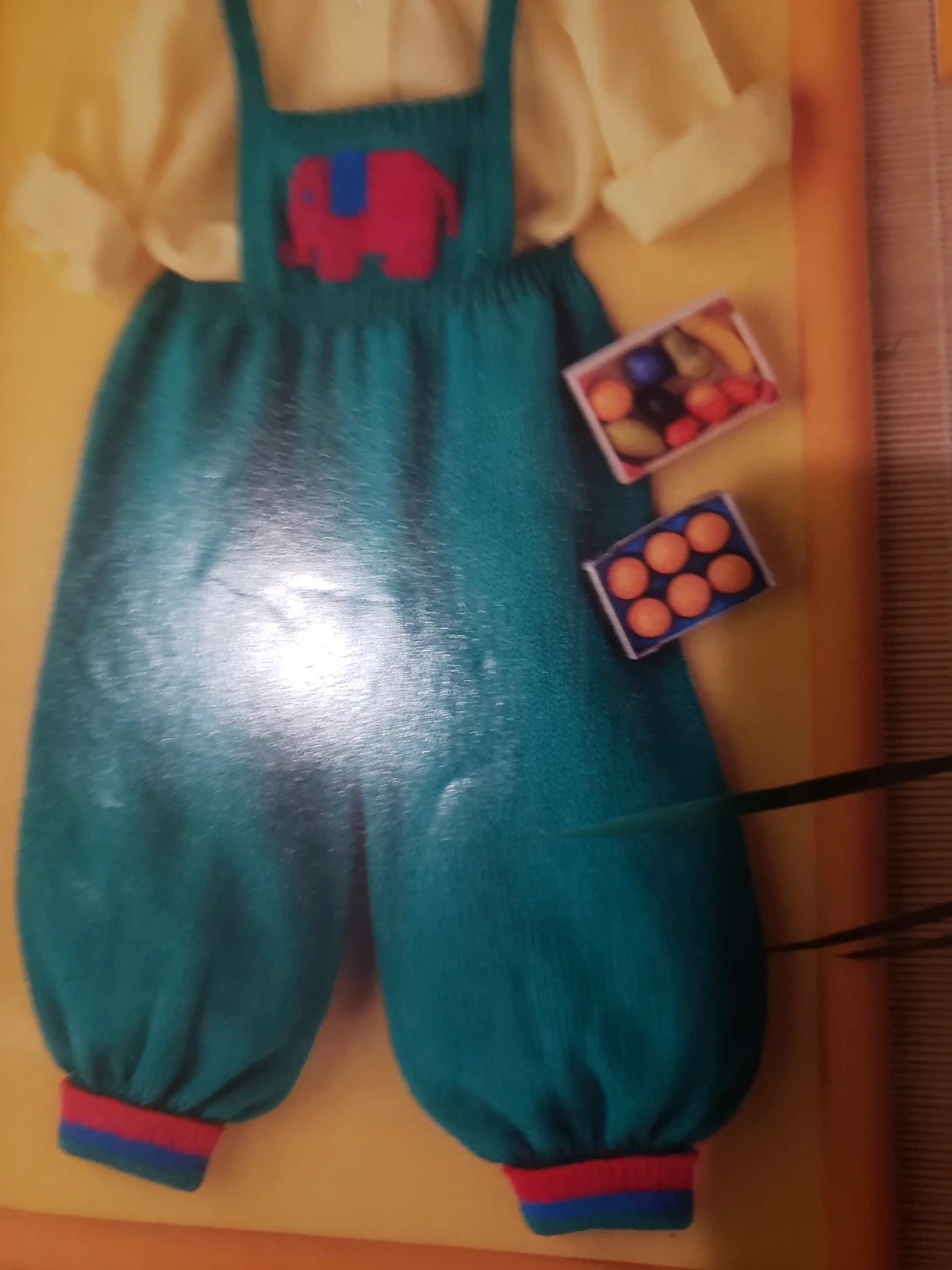 Hand knit Coveralls with elephant pattern