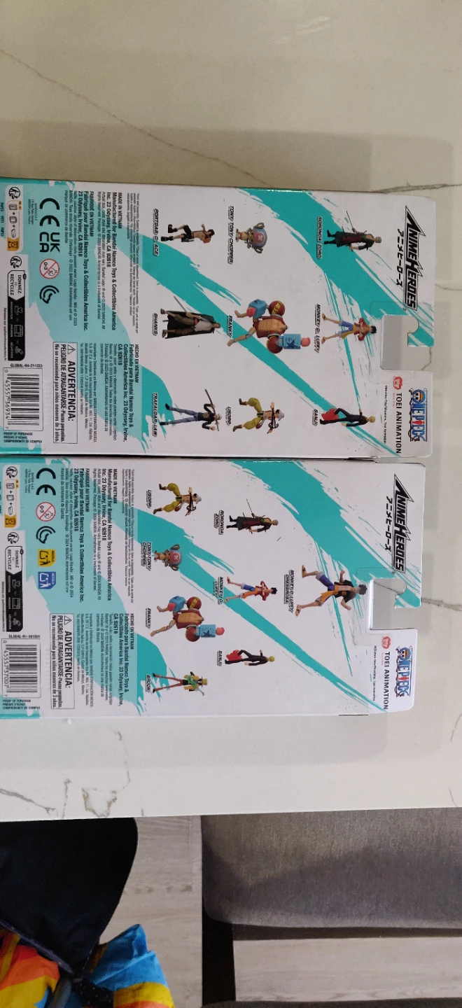 This set includes two action figures from the One Piece series: Monkey D. Luffy (Dressrosa) and Portgas D. Ace. They are part of the Anime Heroes line. Figures come in original packaging.
