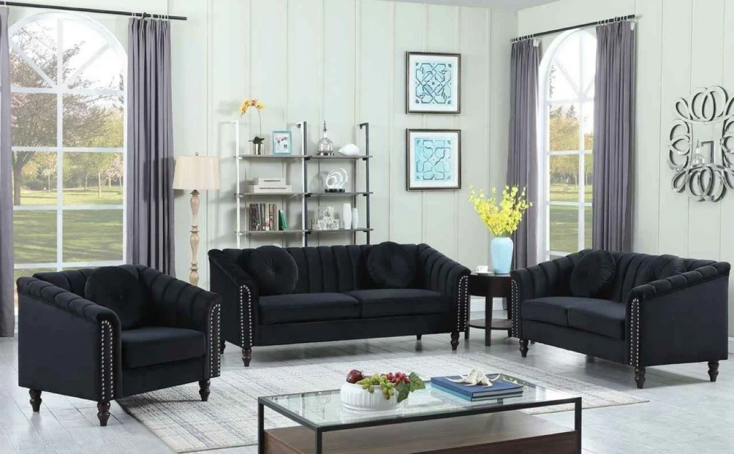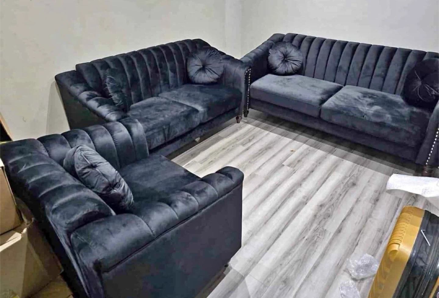 Black Velvet Sofa Set