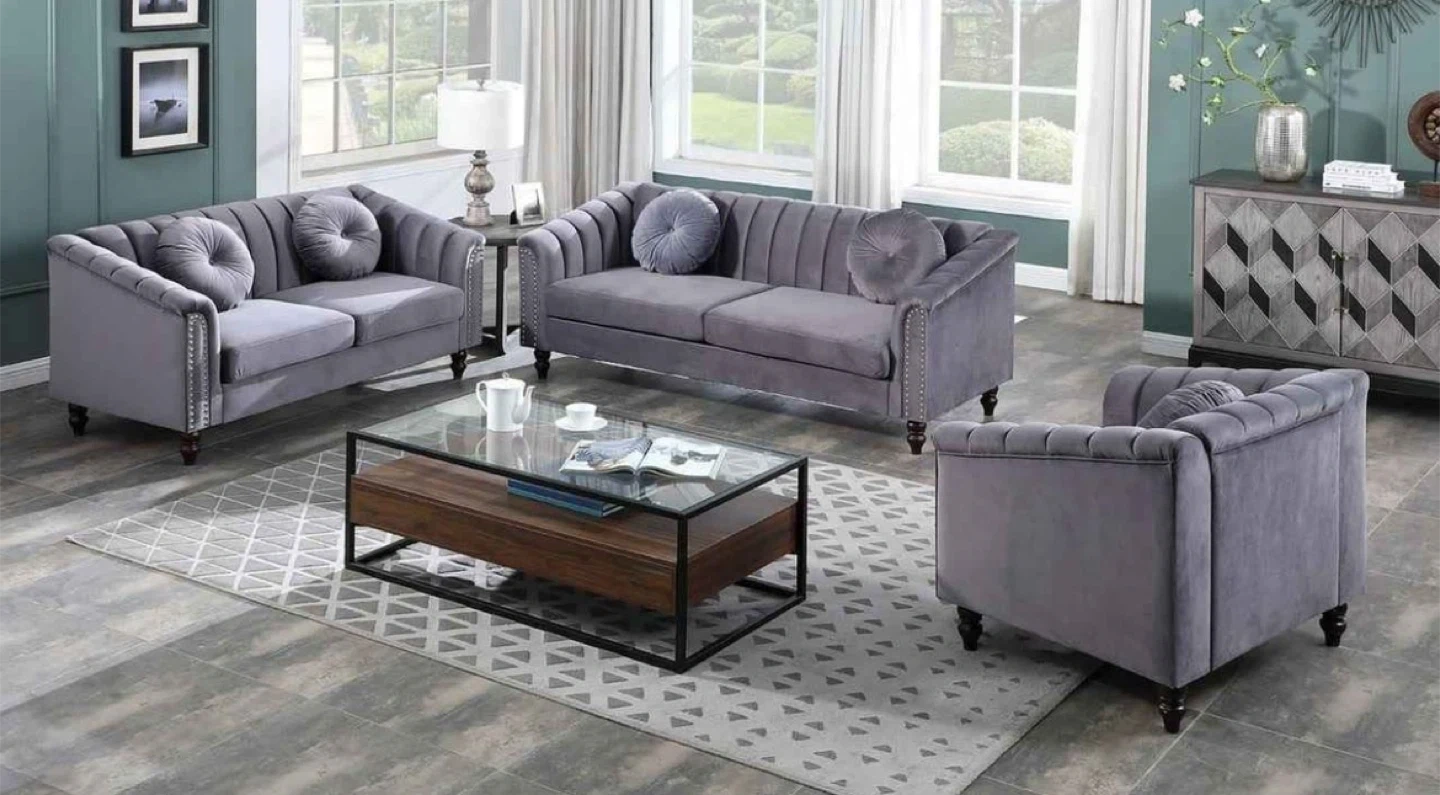 Black Velvet Sofa Set