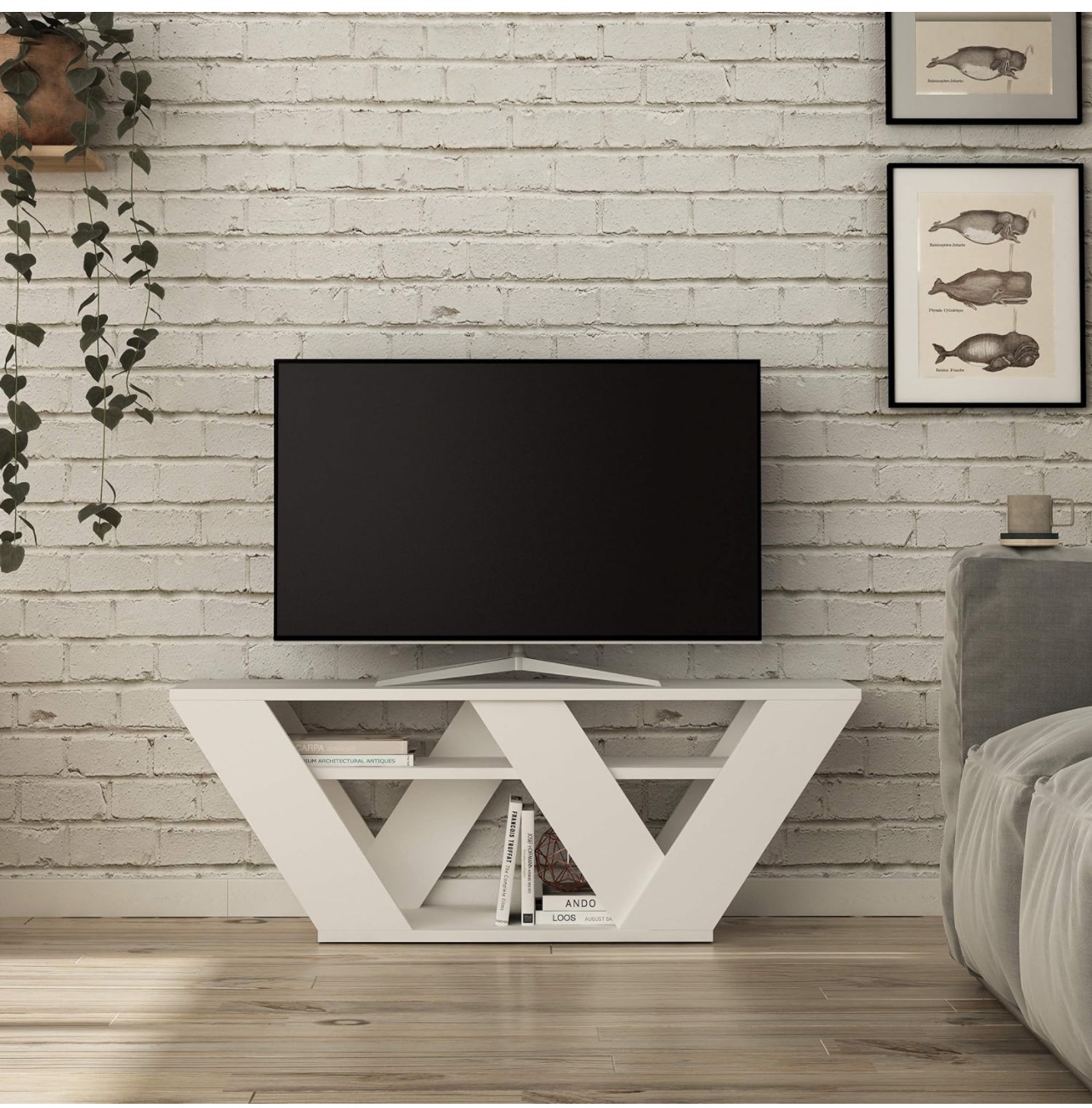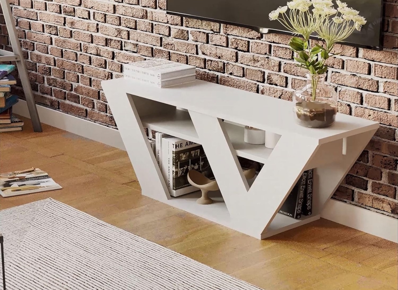 Pipralla Television Unit is made from manufactured wood with a solid-color design, and it has two open shelves where you can keep your latest reads. The upper surface of this unit can accommodate televisions up to 50 inches in size.