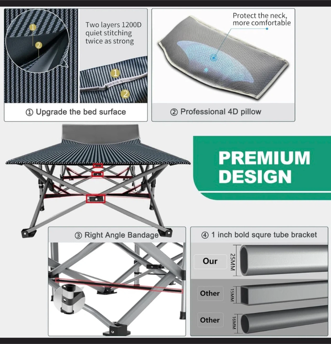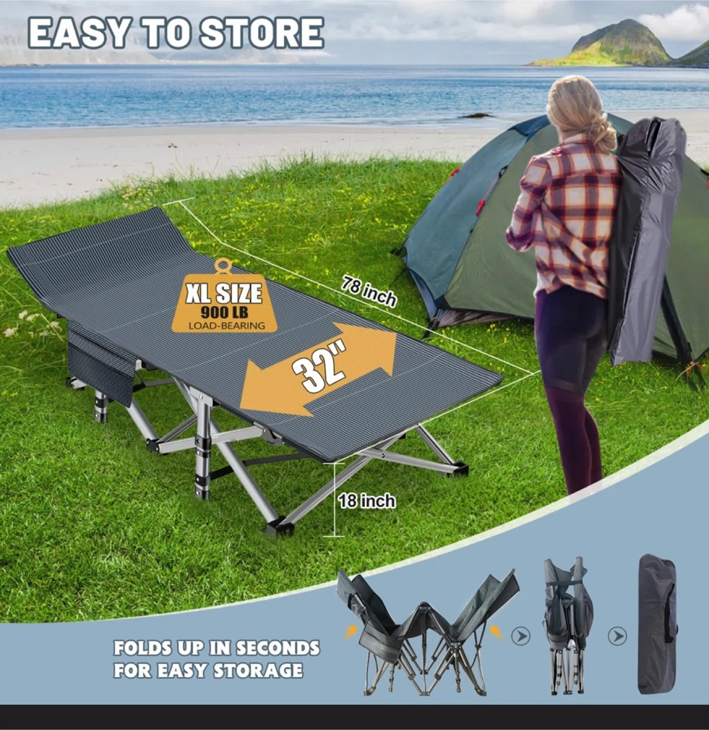 XL Oversized Camping Cot with Pillow and Carry Bag