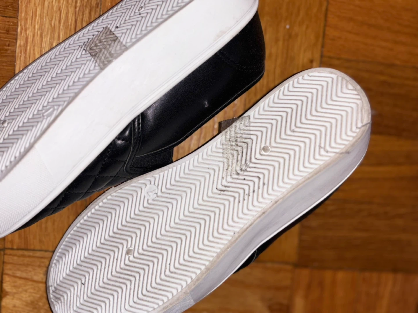 Selling a pair of Streetwear Society slip-on shoes in black. They are a size 7. These shoes have a quilted design on the upper part and a white sole. Perfect for casual wear.