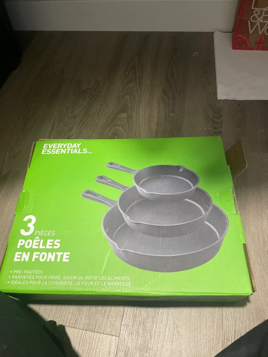 This is a 3-piece set of pre-treated cast iron skillets. They're perfect for frying, searing, or roasting food. Use them on the stovetop, in the oven, or on the barbecue!