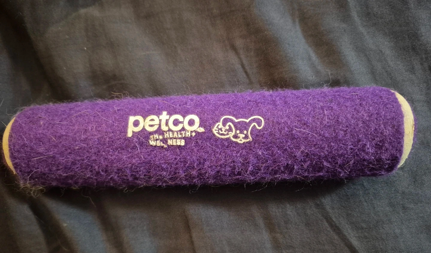 This is a Petco brand dog toy. It's a fuzzy purple tennis ball.