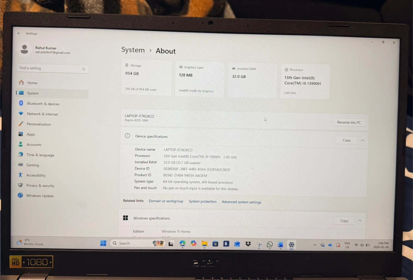 Acer Aspire 5 i9 | 32GB RAM | 1TB SSD | 15.6” FHD | Like New