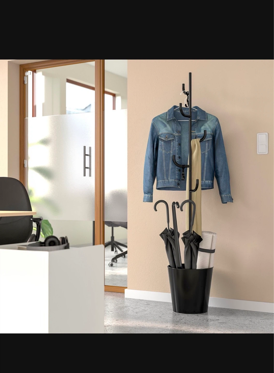 Ikea Black Metal Coat Rack with Umbrella Stand