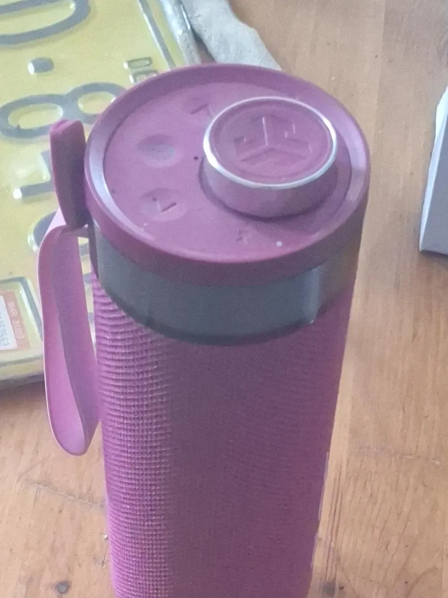 Purple JBL portable speaker. Fabric exterior. Great for taking your music on the go! Its brand new i used it 2 times then got a Bose. Sound is really good for the price. I threw the box out