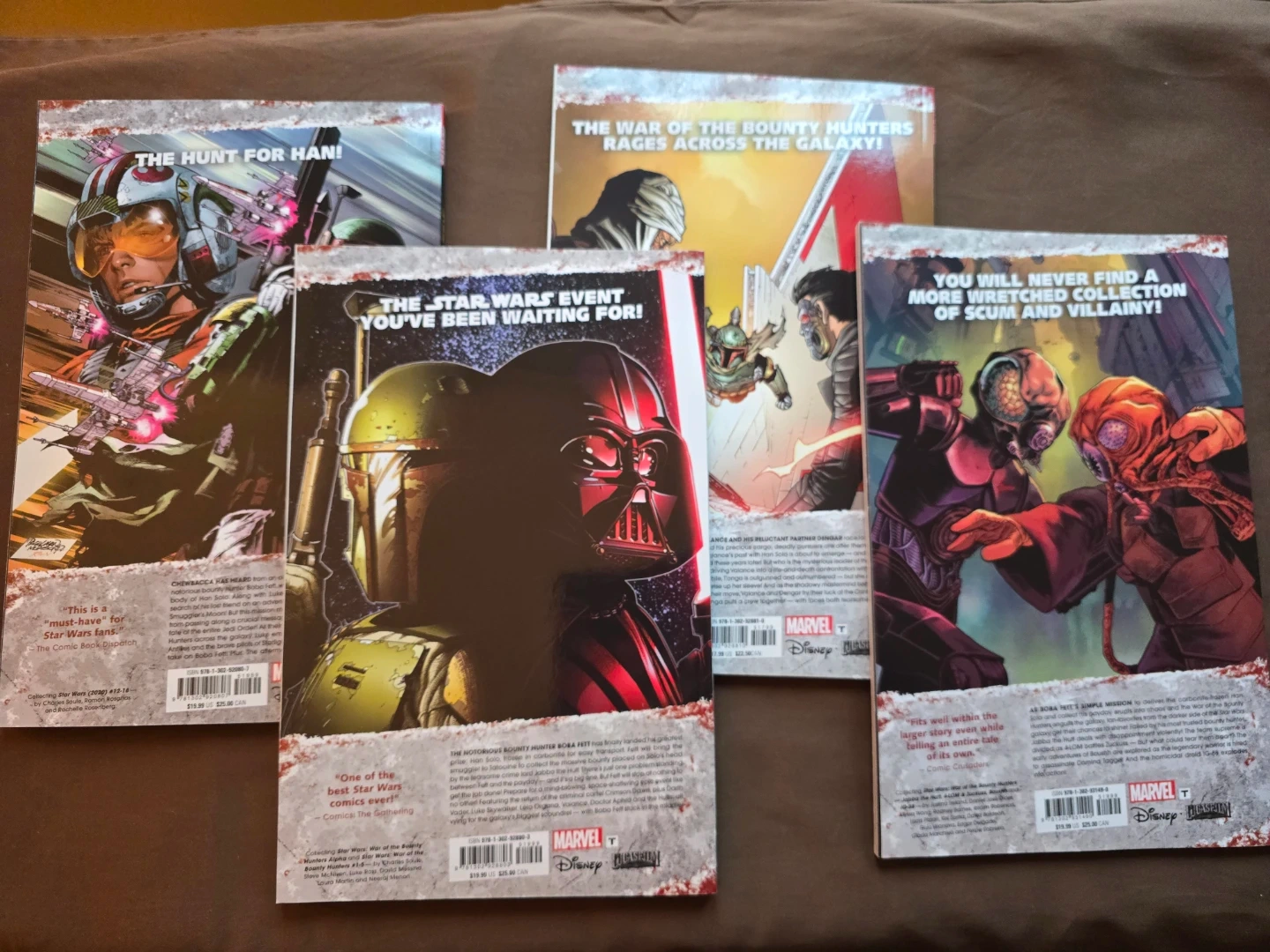 This is a collection of Star Wars: War of the Bounty Hunters comic books. It includes the main series and the companion book. These comics feature stunning artwork and an exciting storyline for Star Wars fans.