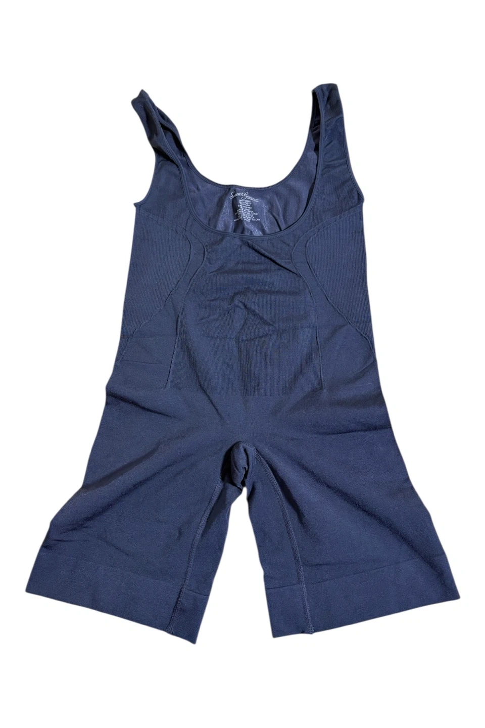 This Smoothform shapewear bodysuit is made with 77% Nylon and 22% Spandex. It also contains 1% Cotton. Machine wash cold on a gentle cycle and do not bleach. Hang or lay flat to dry.