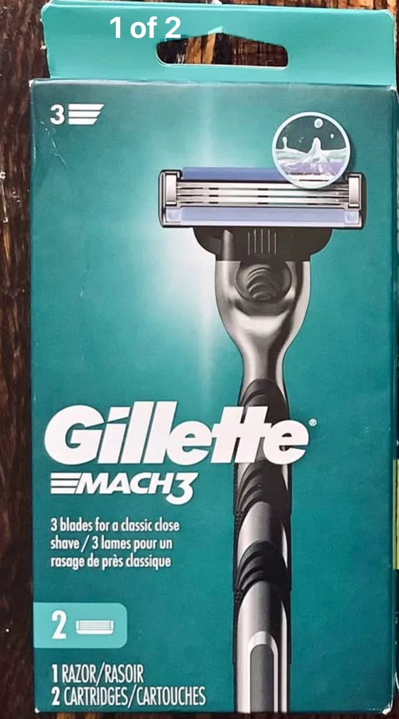 Gillette Mach3 razor. Comes with 2 cartridges. It's designed with 3 blades for a classic close shave.