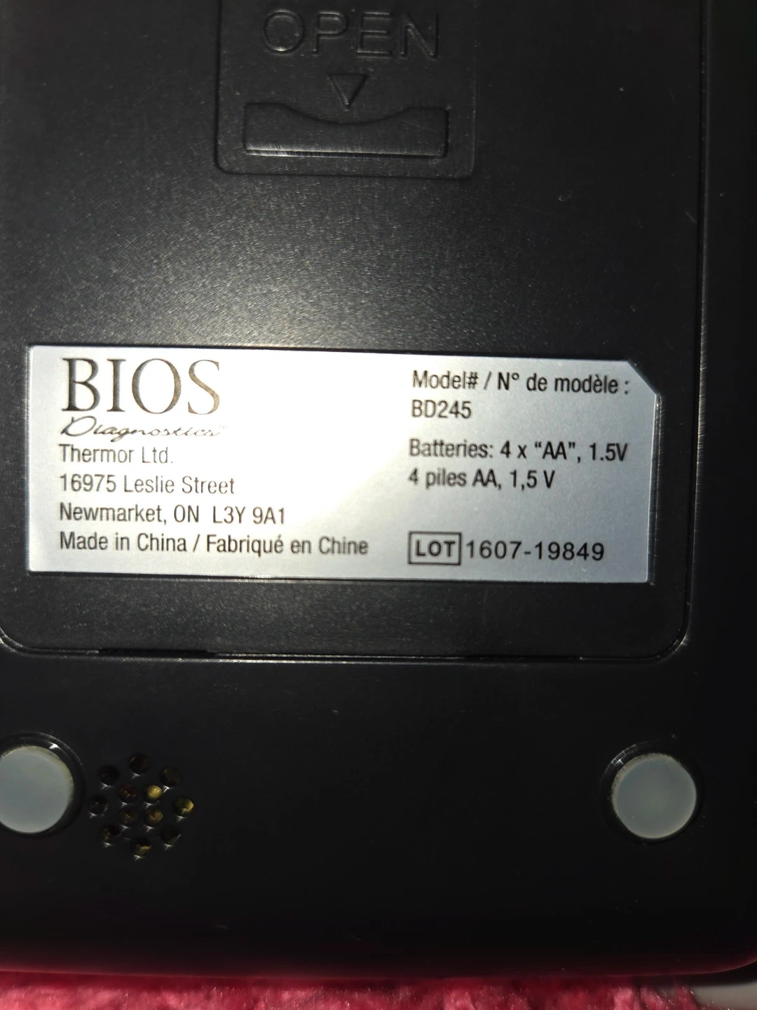Selling a BIOS Diagnostics blood pressure monitor, model BD245. It requires 4 AA batteries, 1.5V. This is a great device for keeping track of your health at home!