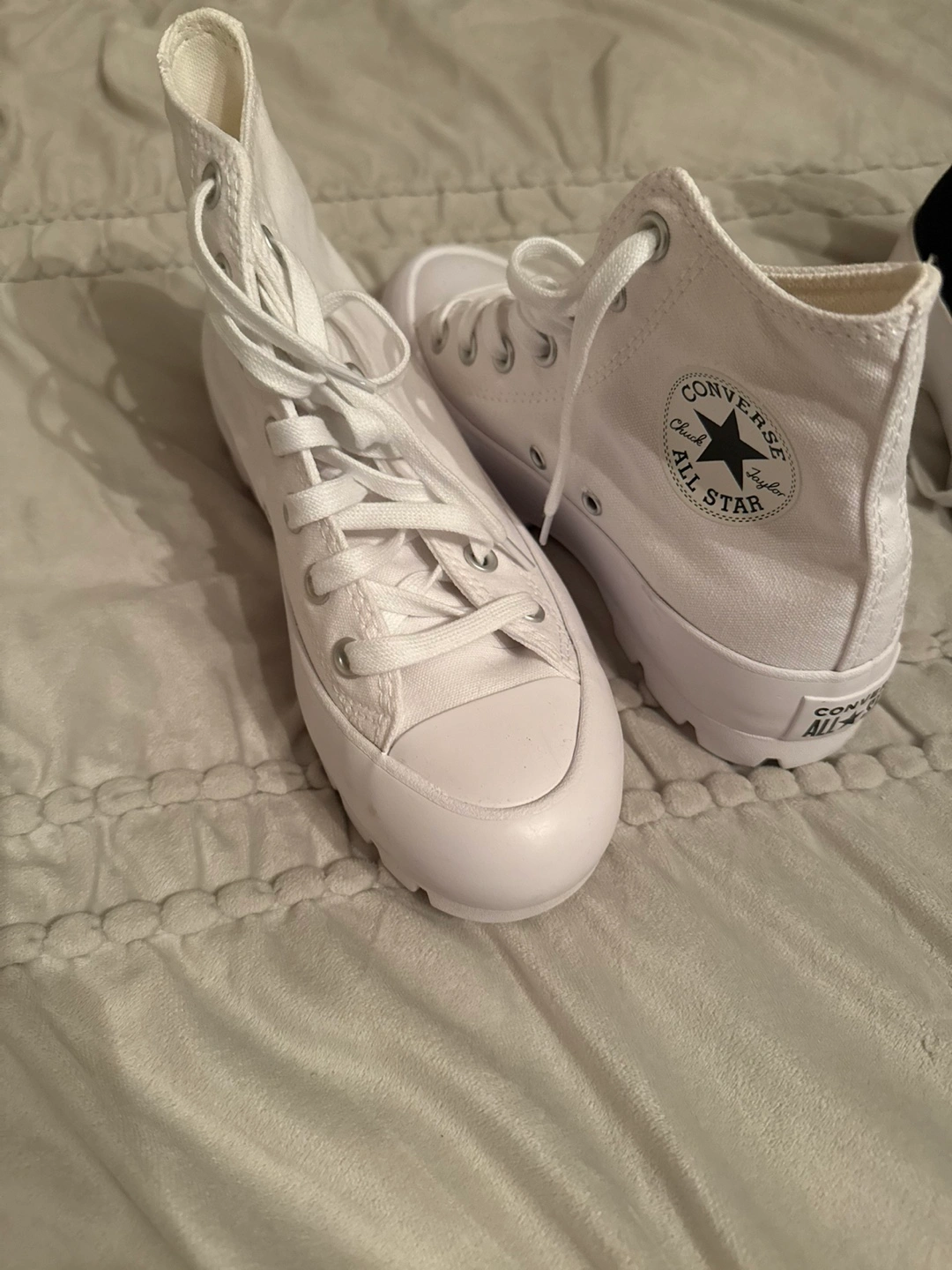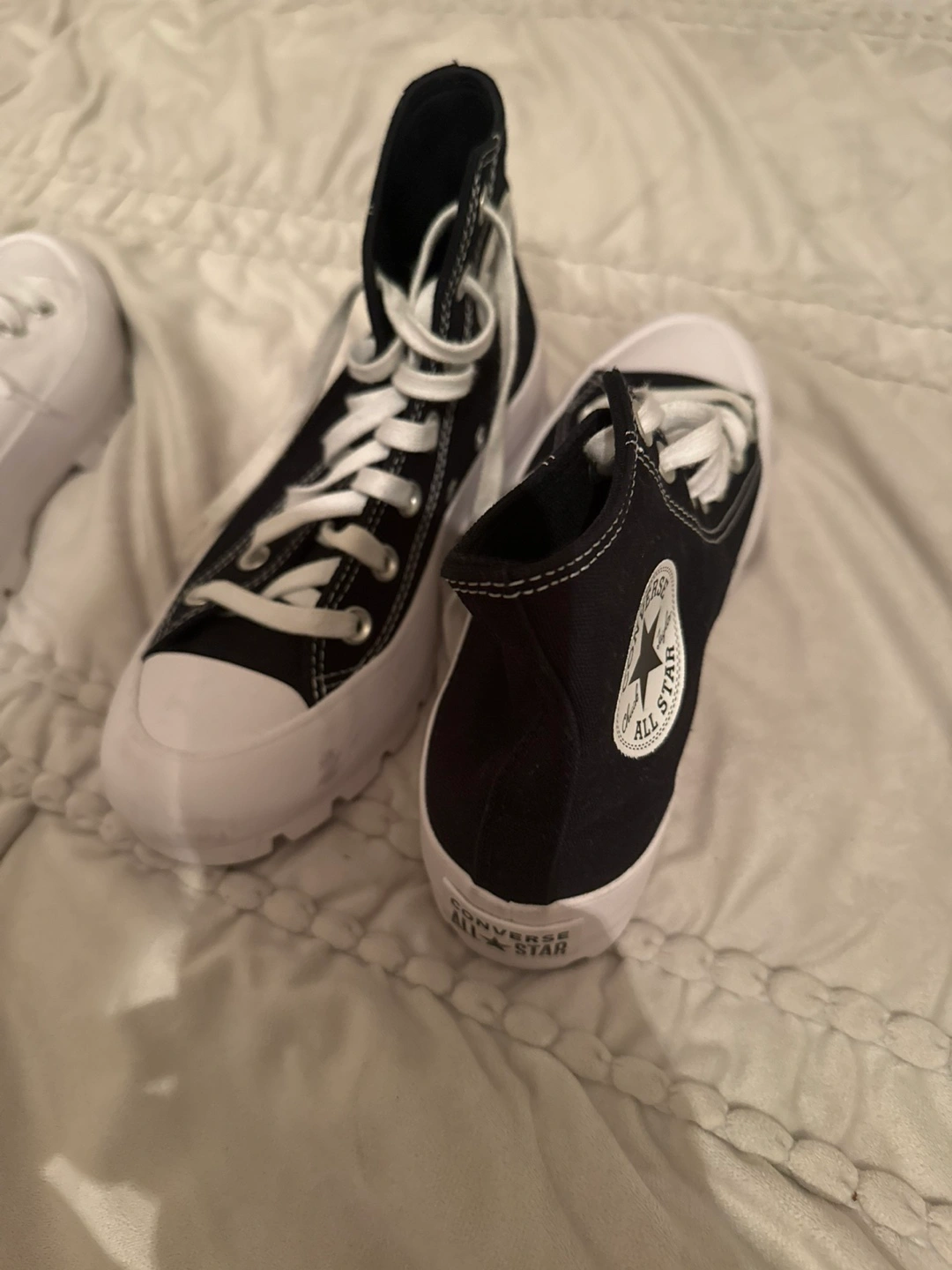 Selling a pair of Converse Run Star Hike Platform High Tops! They come in a stylish black and white colorway. These sneakers feature a unique platform sole that adds a bit of height and a bold look to any outfit. They're in great condition and ready for a new home!