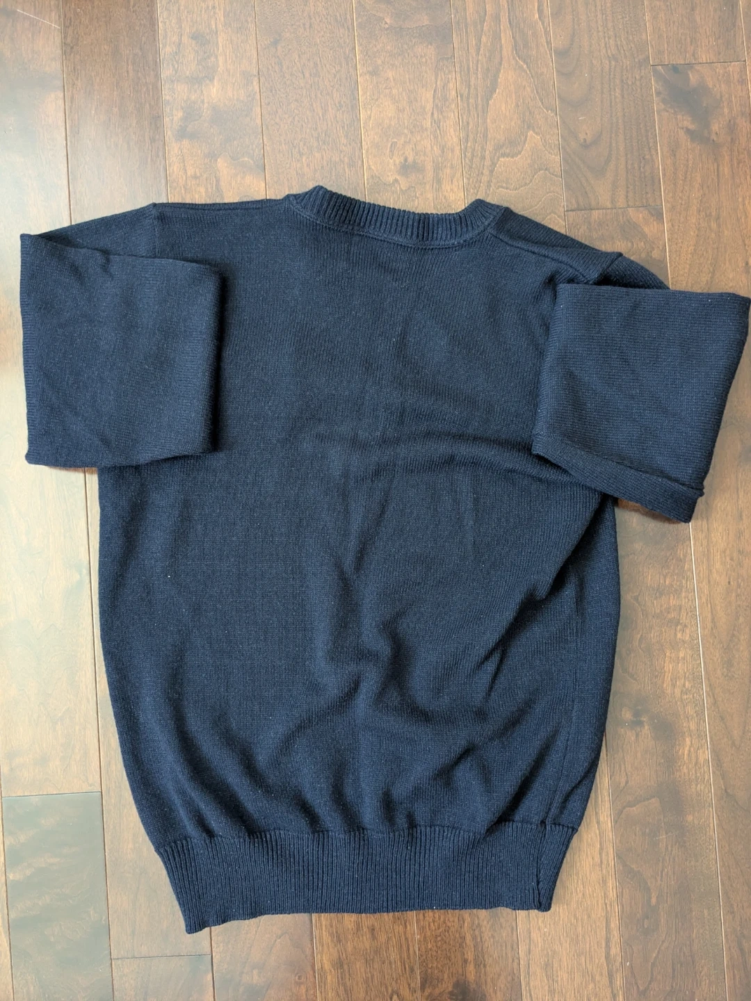 Selling a Mary Ward CSS Navy V-neck sweater from Halpern's. It's a size A-S. It is in excellent condition with no tears, stains or holes.