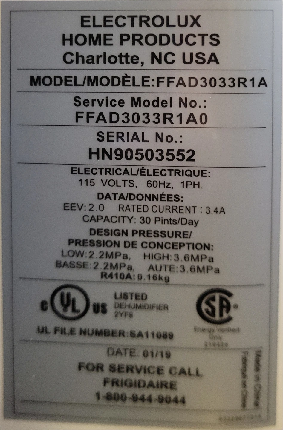 Frigidaire 30 Pint Dehumidifier