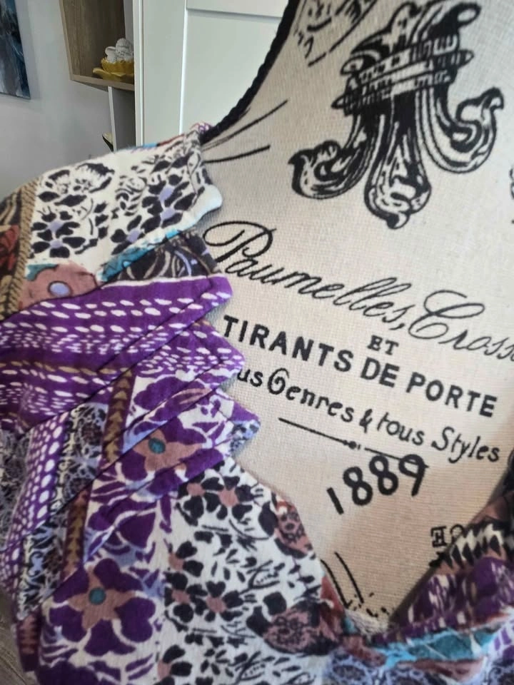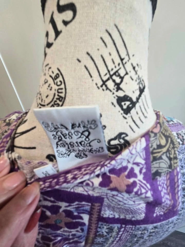 Super cute dress with a nice neckline. Size medium with 3/4 length sleeves and knee length. I can provide measurements if needed.