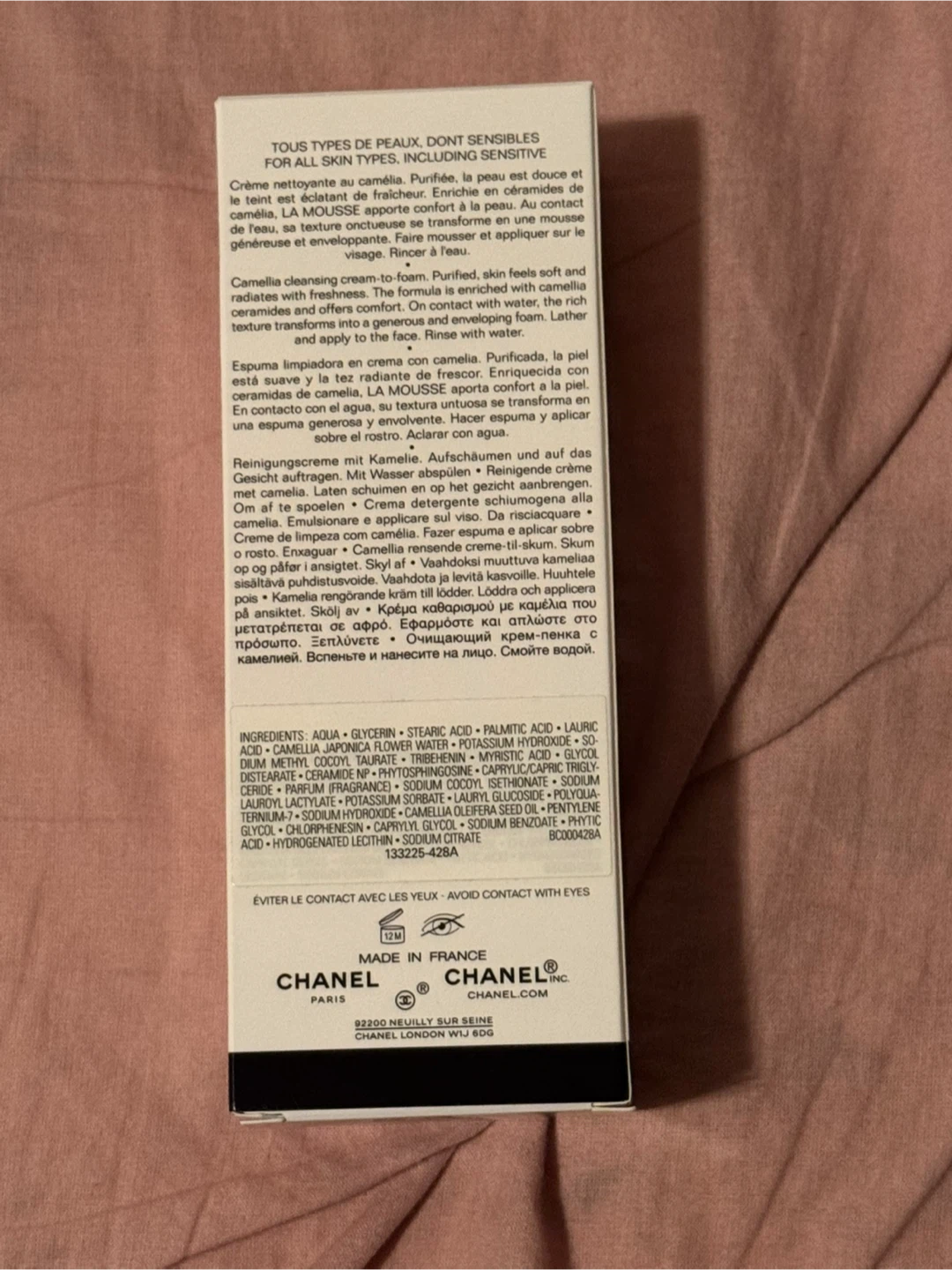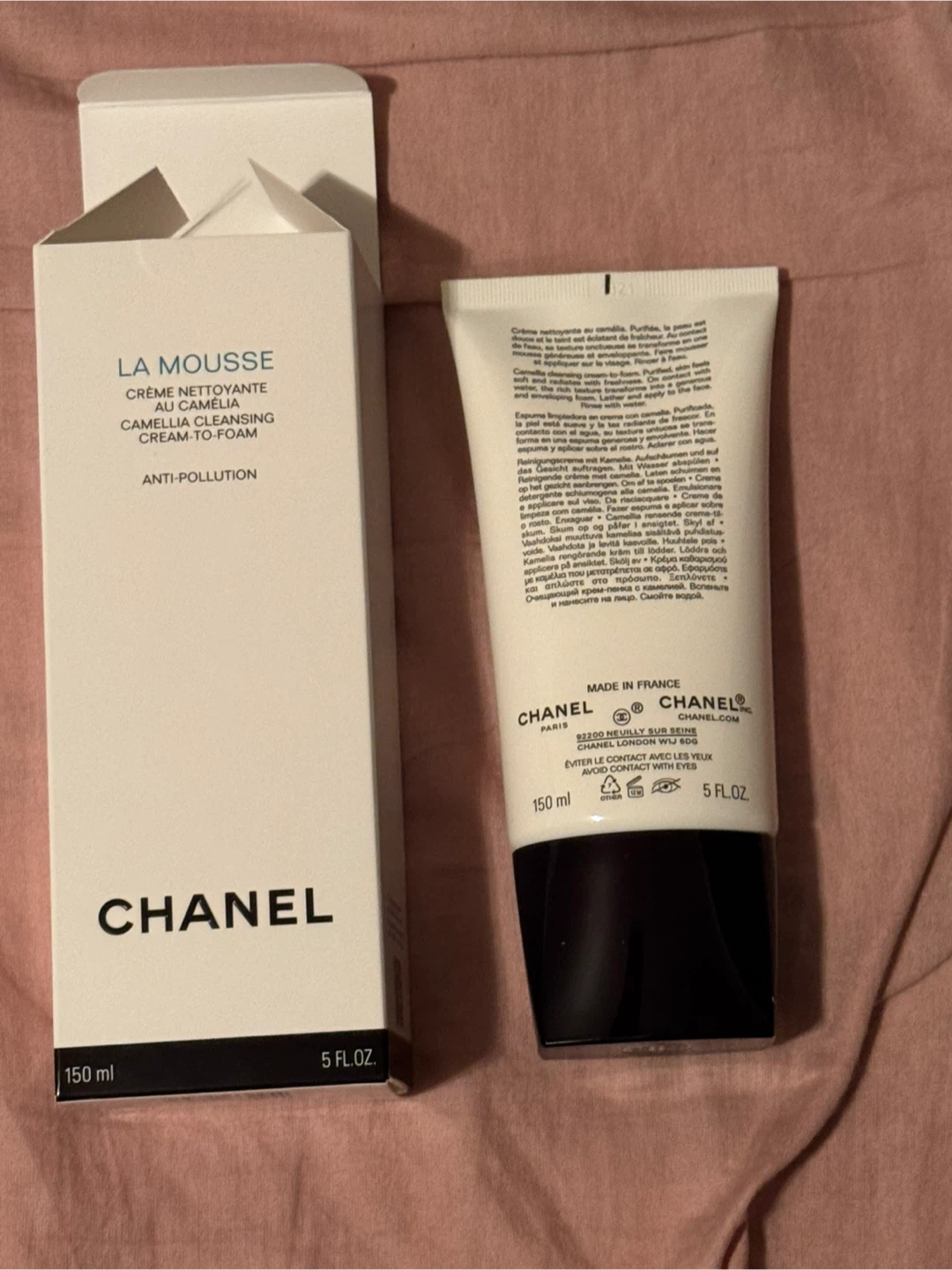 Selling a Chanel La Mousse Camellia Cleansing Cream-to-Foam. It is an anti-pollution cleanser that comes in a 150ml/5 fl oz size. The box is included!