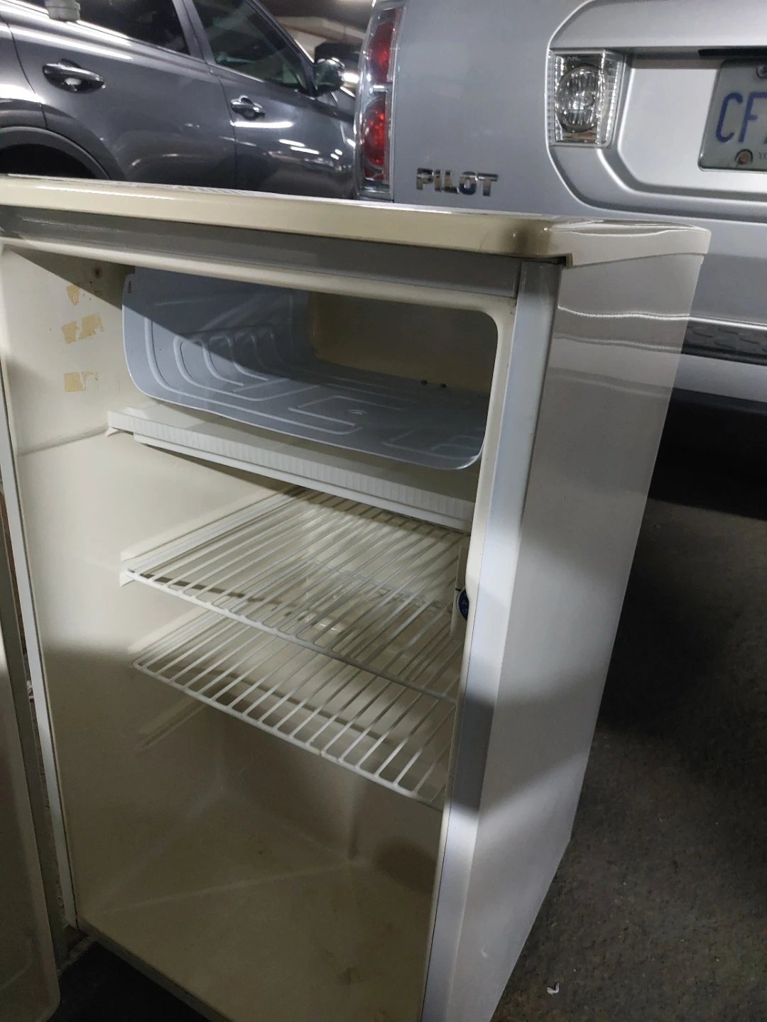 Selling a Danby Designer compact fridge. It's white and in good condition. Great for a small space or extra storage! It's in excellent condition, it's sitting in my living room, taking up space, looking for a new home for it. If the ad is up, it's still available.