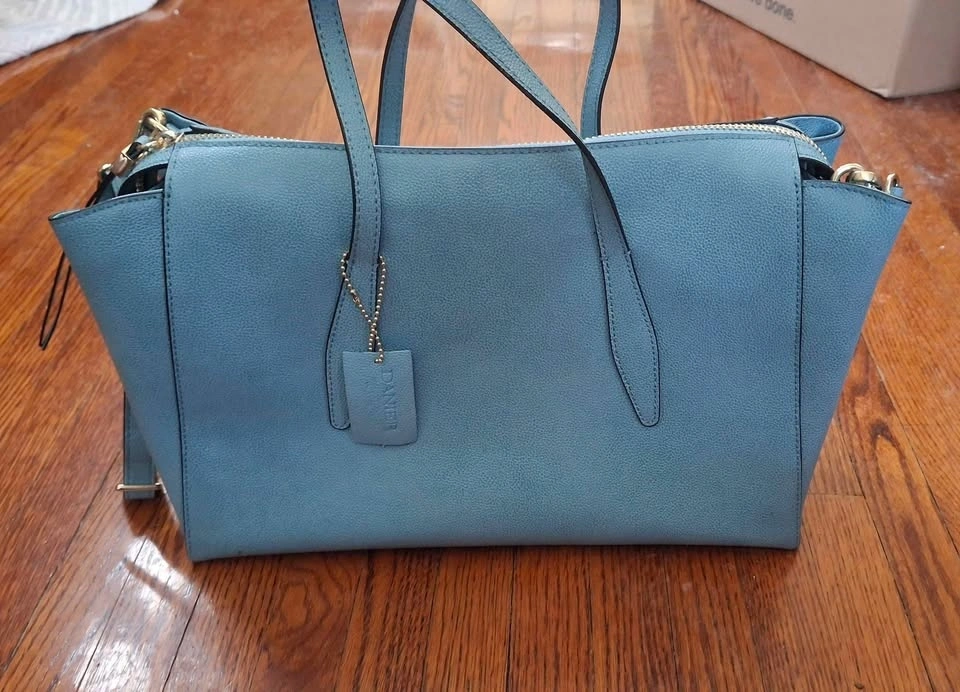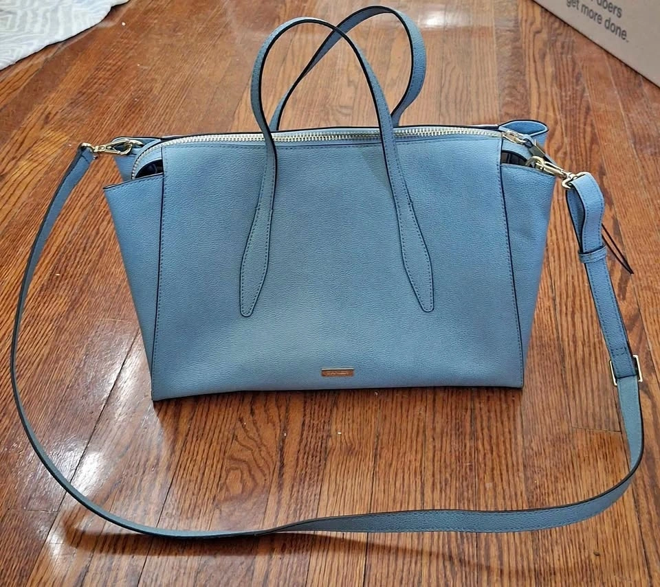 Features quality gold-tone hardware, zip-top closure, and a clean interior.
