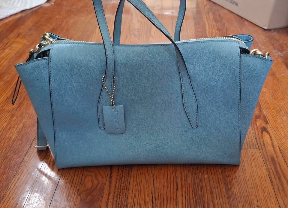 Features quality gold-tone hardware, zip-top closure, and a clean interior.