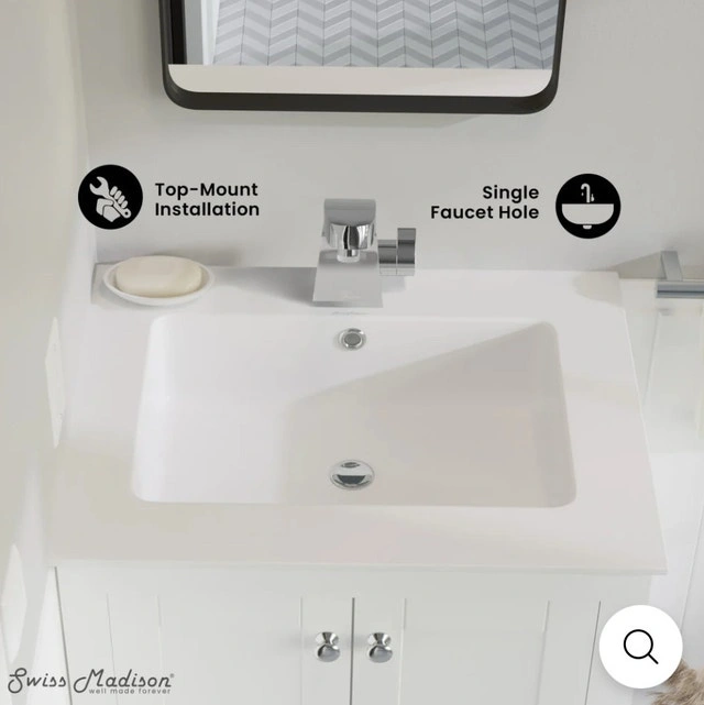 Enhance your bathroom with this new Voltaire 25 vanity top sink, featuring a sleek design and a single faucet hole for easy installation. It's in pristine condition, ready to add a touch of elegance to your space. Brand: Swiss Madison, Model: Voltaire, Size: 25-inch, Condition: New, Faucet Hole: Single. If you're seeing this ad, it means this beauty is still available!