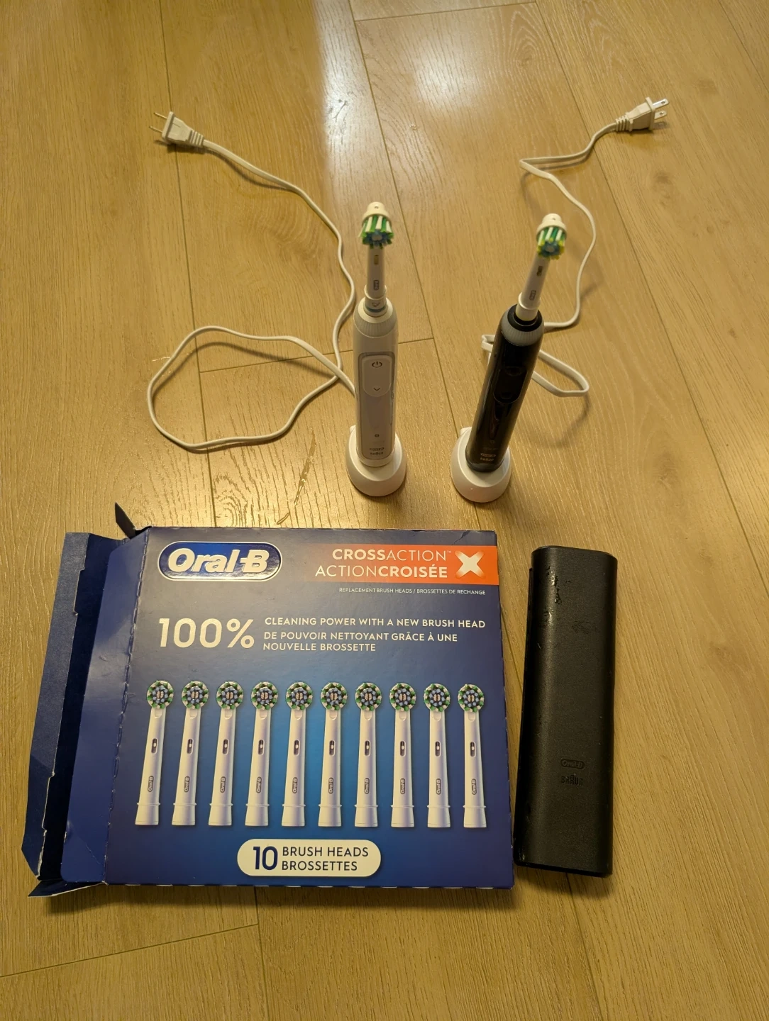 Selling an Oral-B electric toothbrush with a CrossAction brush head, plus a box of 10 additional brush heads! Comes with the charging base and a travel case. Perfect for keeping your teeth clean and healthy!