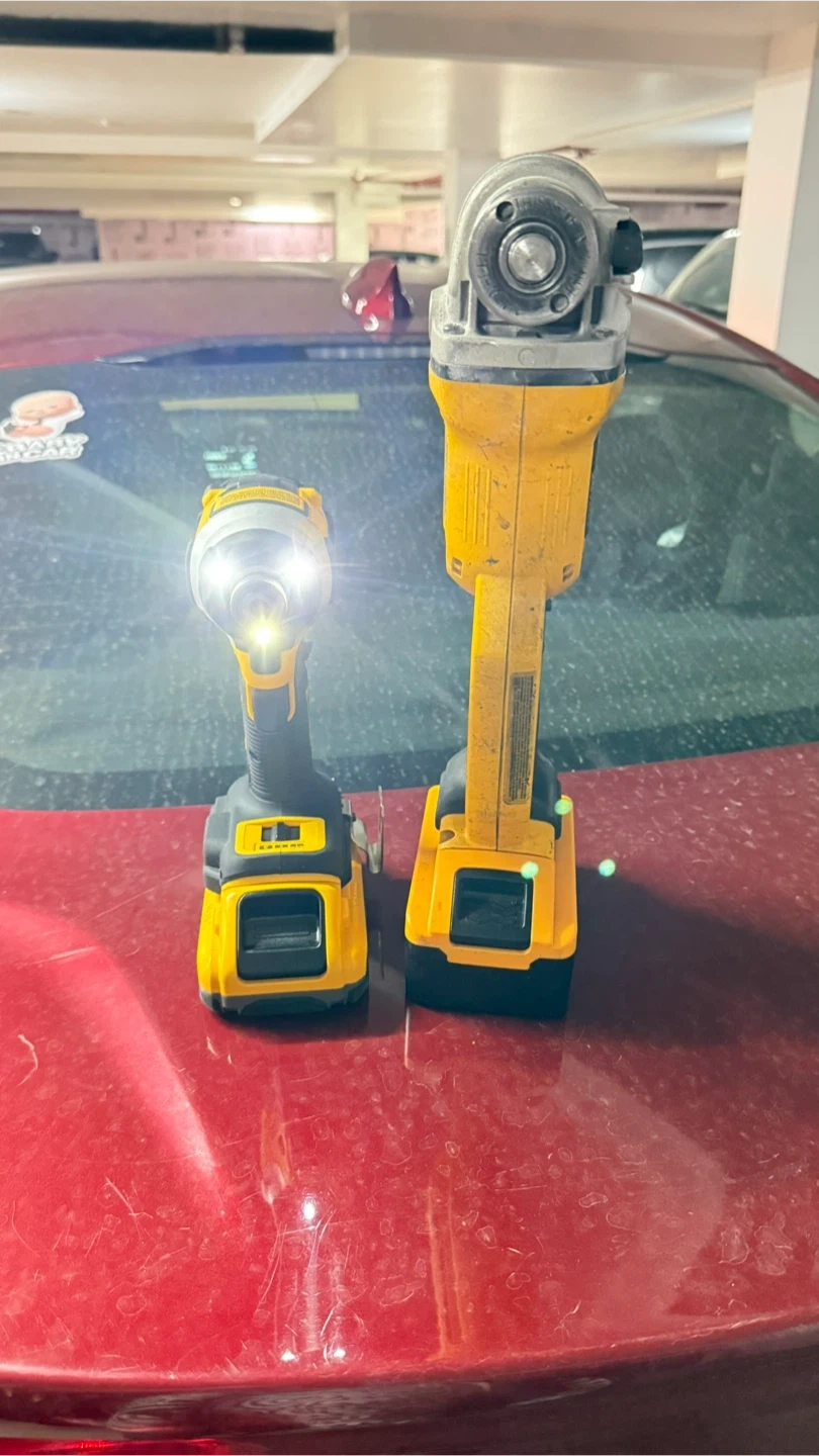Selling a DeWalt 20V MAX cordless impact driver with a 4Ah battery and a DeWalt 20V MAX angle grinder with an 8.5Ah battery. Both tools are in good working condition. These are great for DIY projects and professional use!