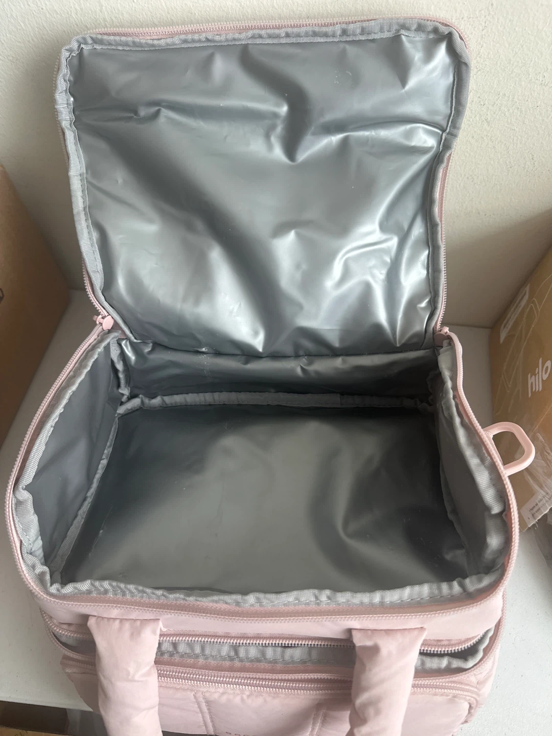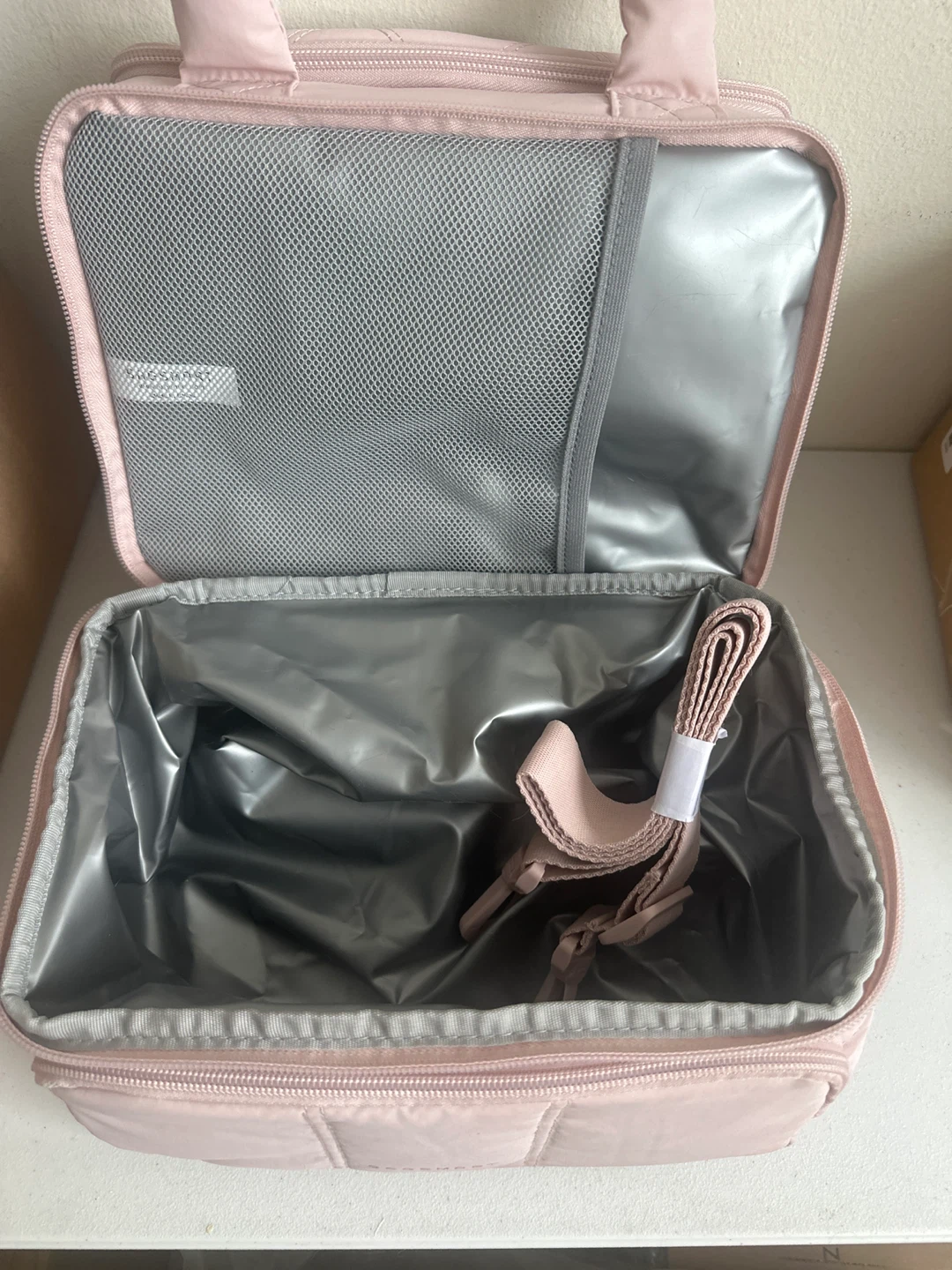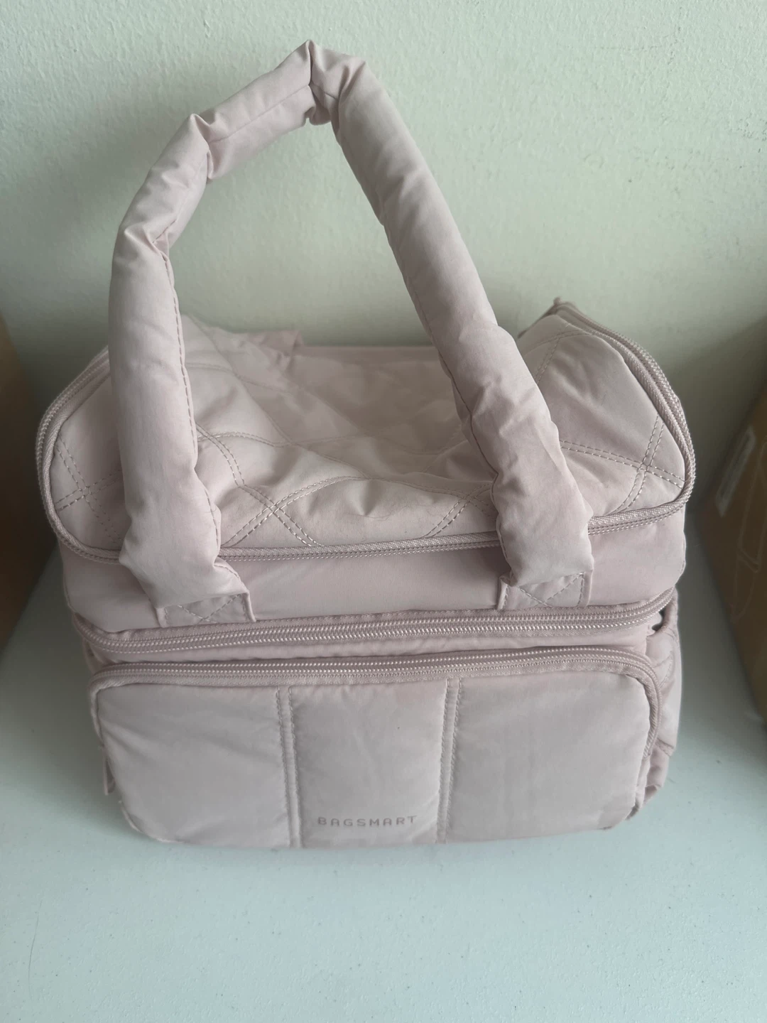 Keep your lunch cool with this BAGSMART lunch bag! It's a pretty pink colour and has a quilted design. It also comes with a shoulder strap for easy carrying