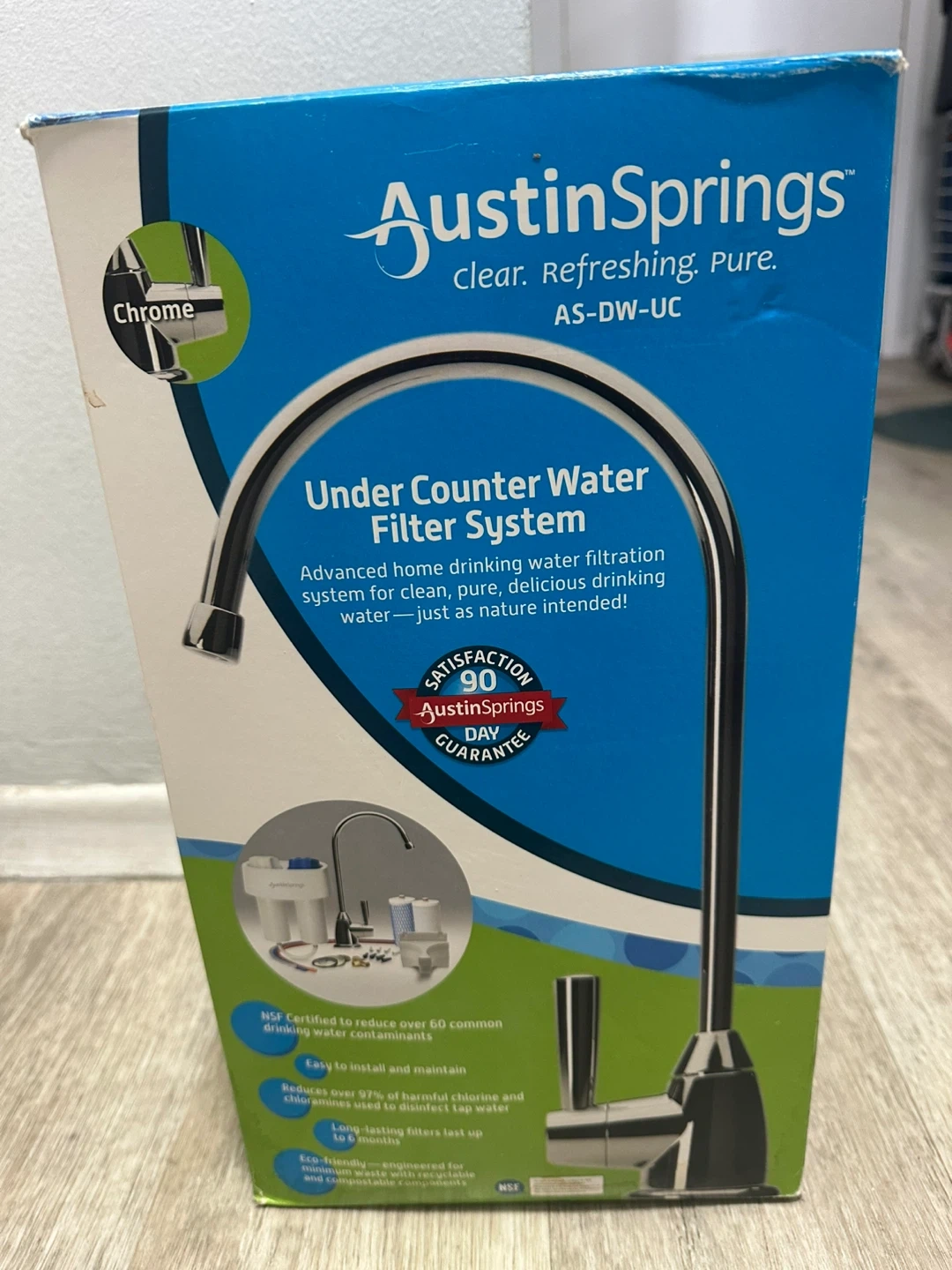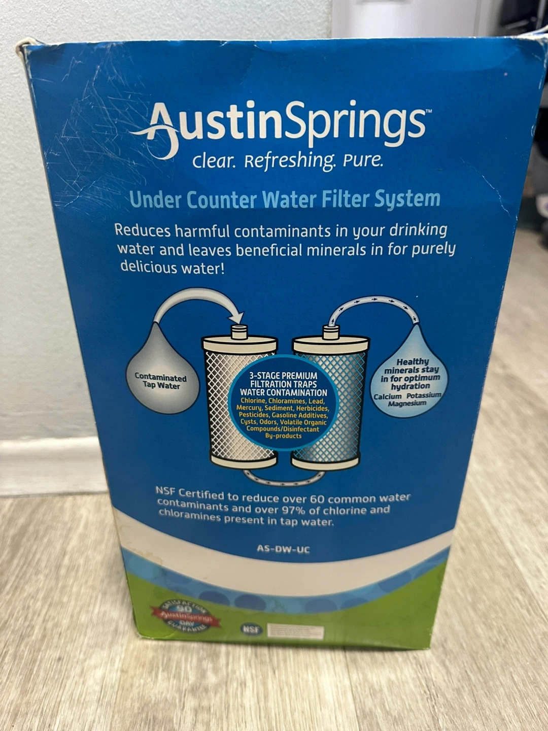 Austin Springs under counter water filter system reduces harmful contaminants. Filters last up to 6 months. NSF certified to reduce over 60 common water contaminants.