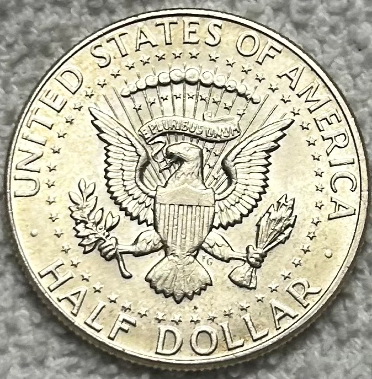 This is a 1964 Kennedy half dollar coin, minted in the United States. It's made of .90% silver. This coin was the first year of issue for the Kennedy half dollar. It's a piece of American numismatic history!