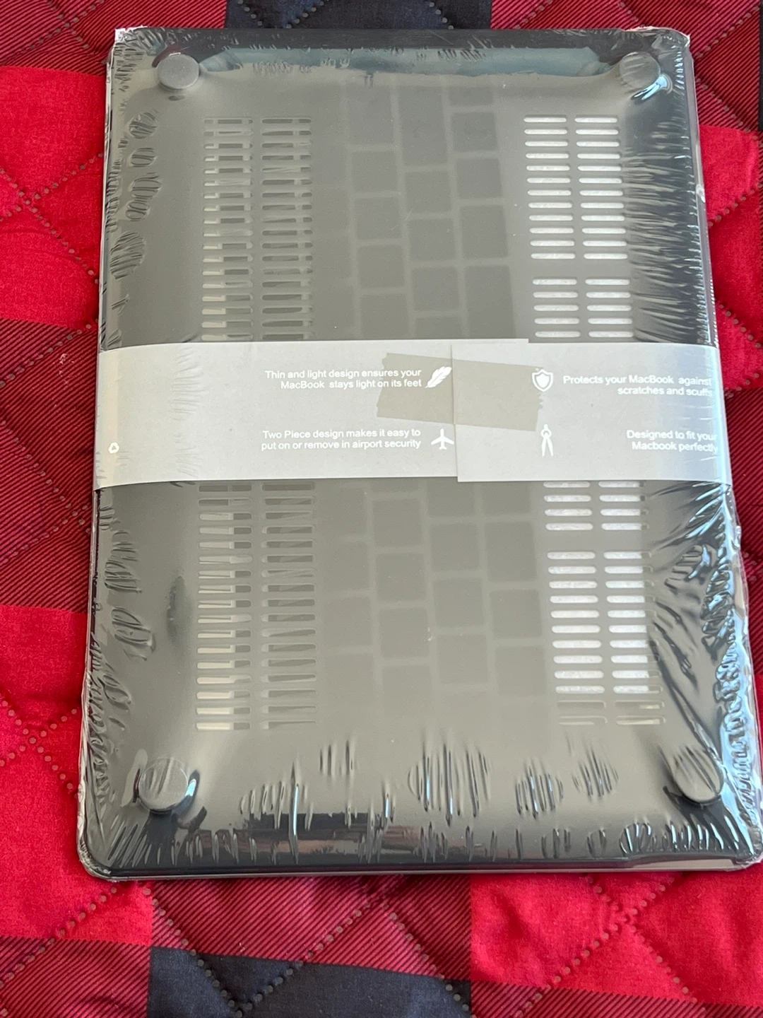 This is a two-piece protective case designed for the New Air 13" laptop. It's made to fit perfectly, offering protection against scratches and scuffs. The thin and light design ensures your MacBook stays light on its feet.