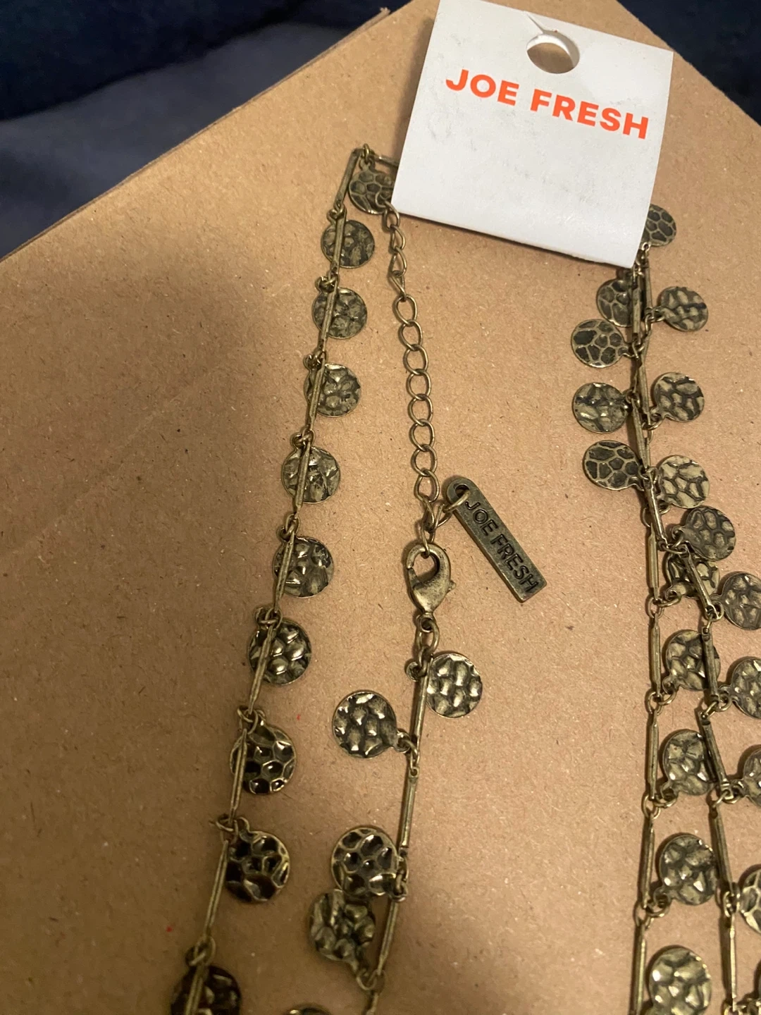 New (Unused) Gold tone Joe Fresh Hammered Disc Necklace