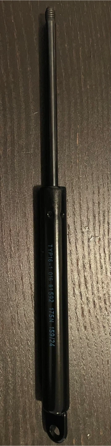 Selling new Suspa Airline gas spring strut. It's in good working condition. The model number is TYP16-1 016 81592 175N 159/24. It has a minimum tube length of 61 mm and a maximum of 225 mm. The tube diameter is 15 mm and the rod diameter is 6 mm. End fittings are M6 x 1.0 mm up to 78 lbs