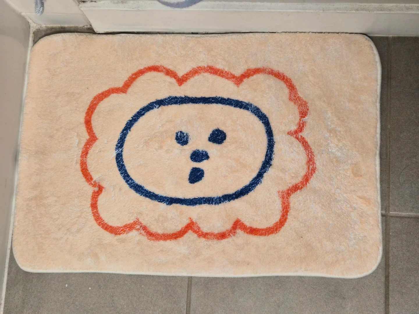 Soft and fluffy bath mat with a cute, simple face design. It's made from a plush material that's gentle on your feet. This mat adds a cheerful touch to any bathroom or entryway!