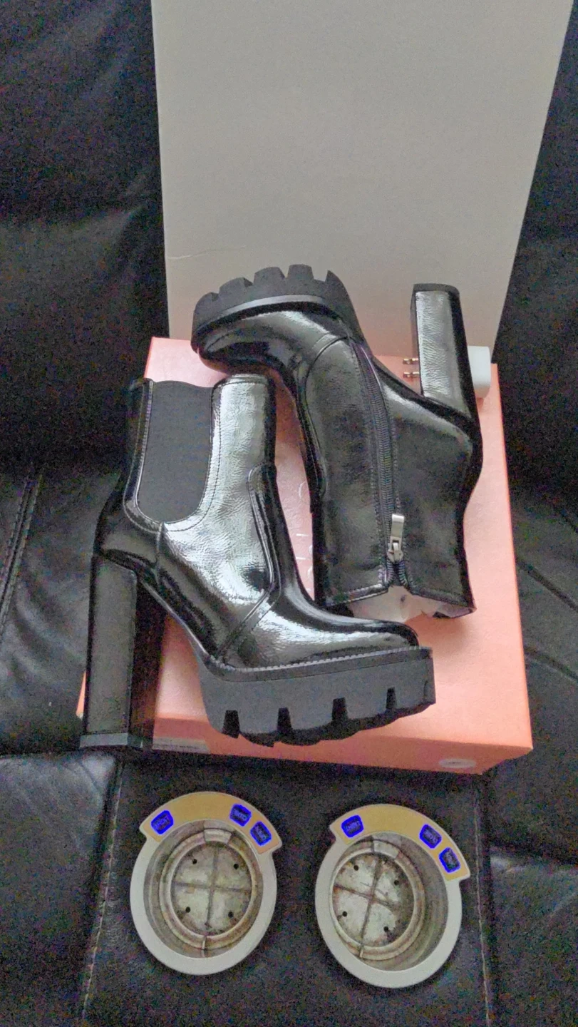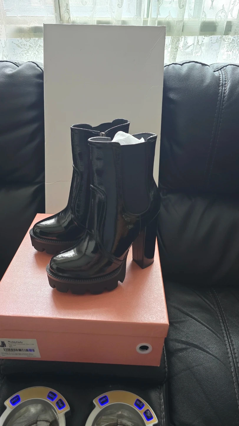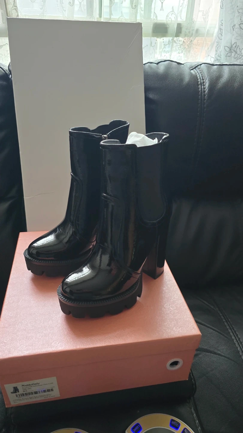 Brand new Women's High Glossy Black Chunky Boots
