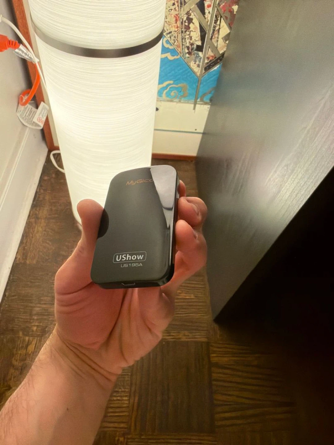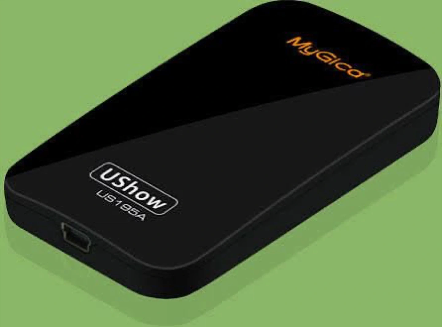 MyGica UShow US195A – portable USB display adapter/media device (HDMI output) for connecting a laptop or PC to a TV/monitor or for simple media playback.