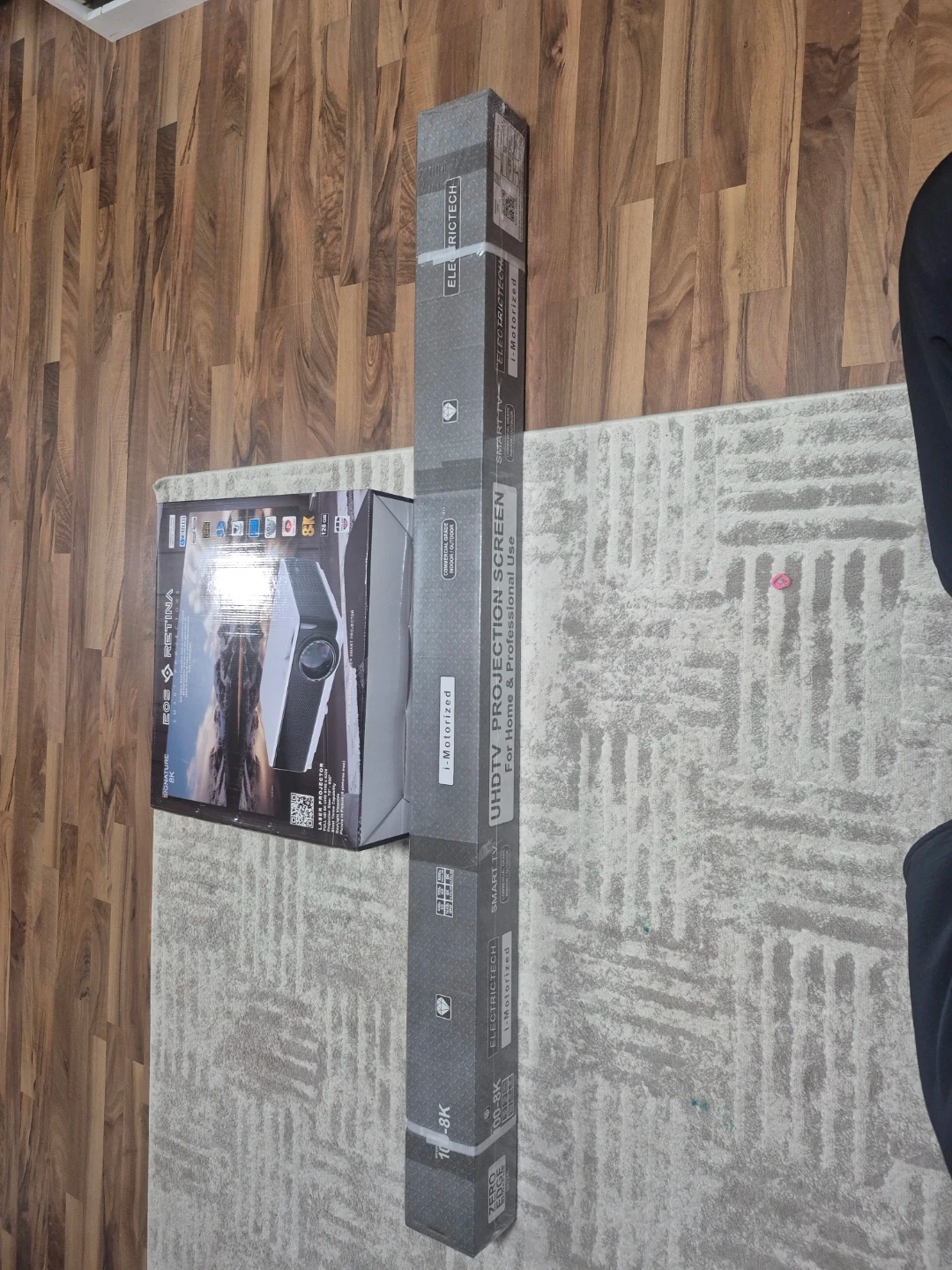 New EOS Retina Signature 8K Smart Projector and Electric Tech i-Motorized 100-8K Projection Screen. Projector is 8K UHD, 8192 x 4320 resolution, laser smart projector. Has 70-600 inch projection size, 128 GB storage. Wireless, commercial grade for indoor/outdoor use. Screen is motorized UHDTV, 100-inch, 8K compatible. Both still in boxes.