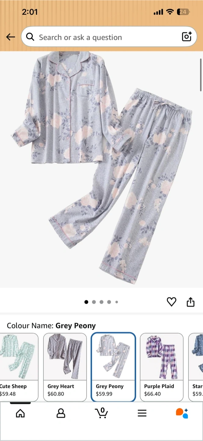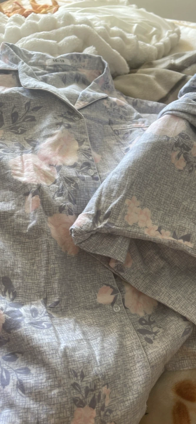 Comfy brushed cotton flannel pajama set in a grey peony print. Features a high-quality button-down top with hemmed cuffs and drawstring waist pants. Perfect for staying warm and cozy!