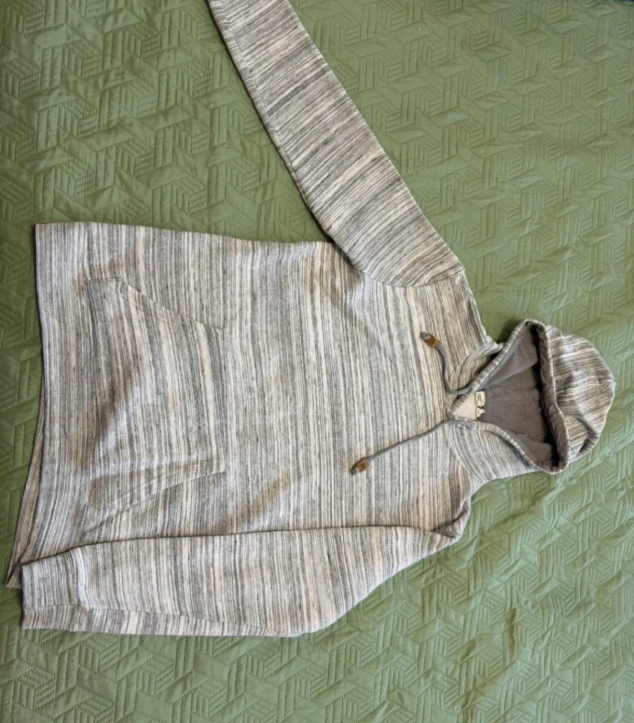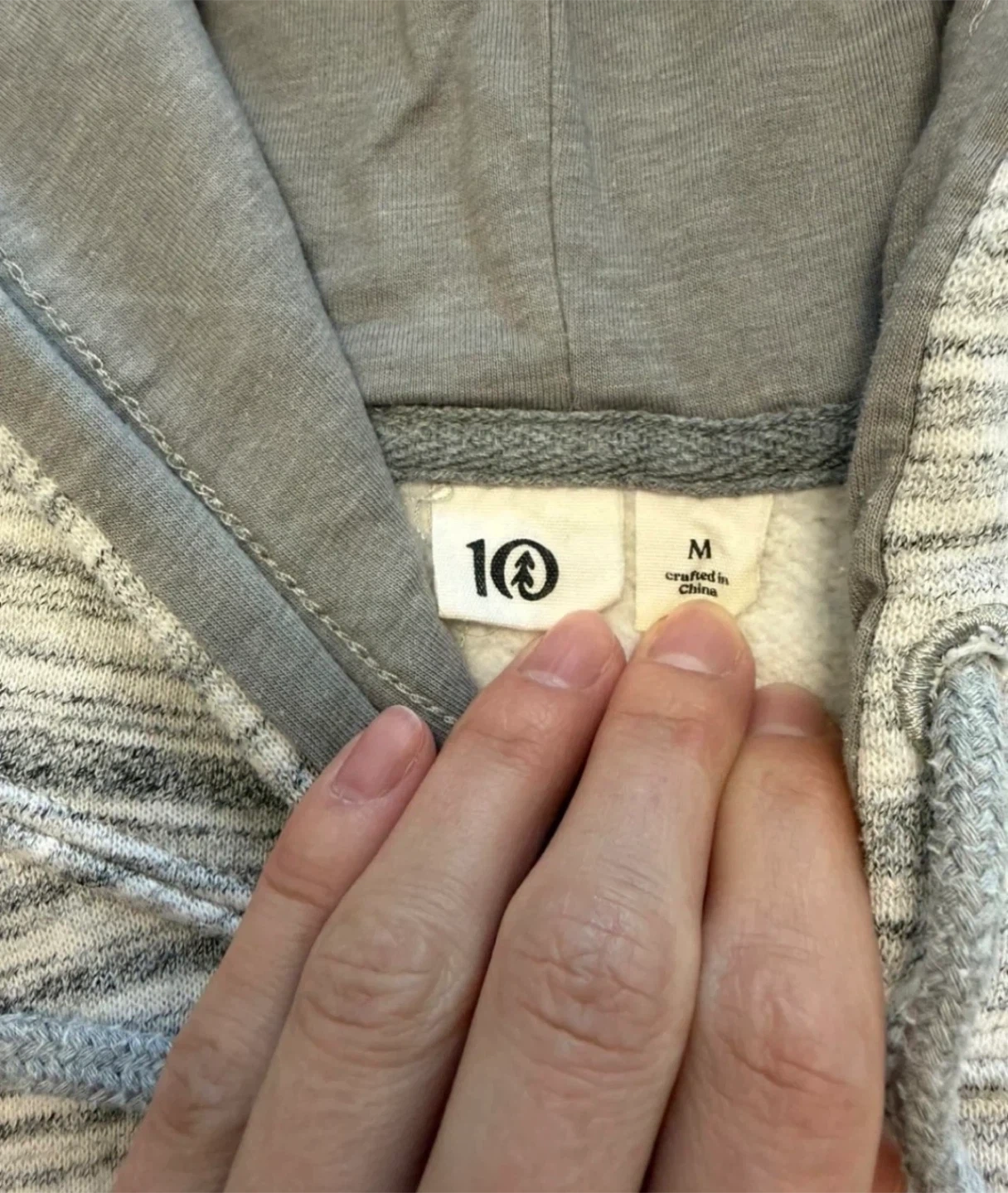Grey marled hoodie from 10 Outdoors. Size medium. It's a comfy hooded sweatshirt with a front pouch pocket and drawstring hood. Cotton blend material.