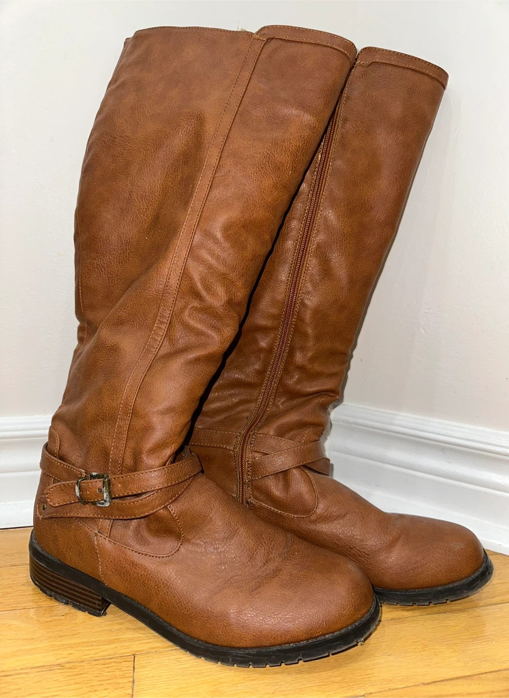 Brown Faux Leather Knee-High Boots - Size 10 π₯